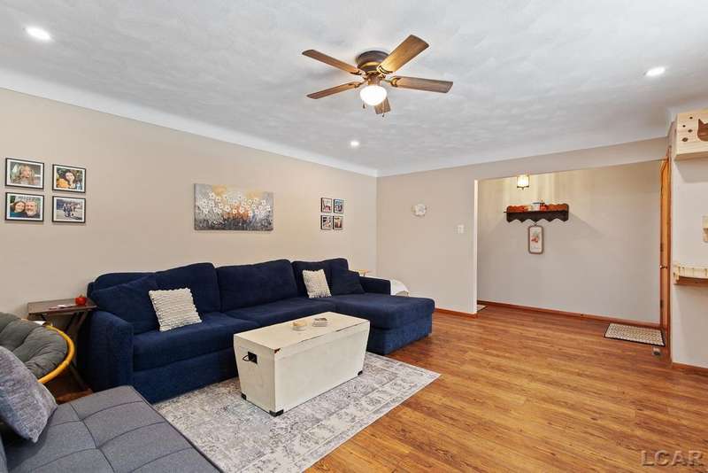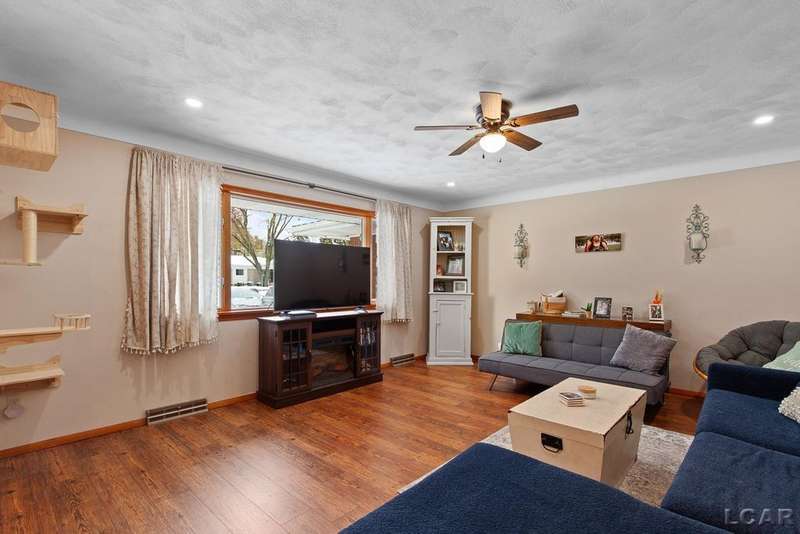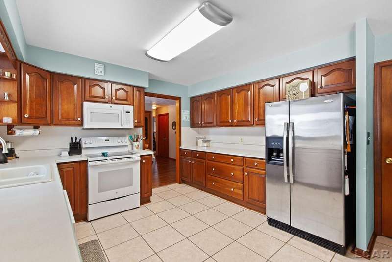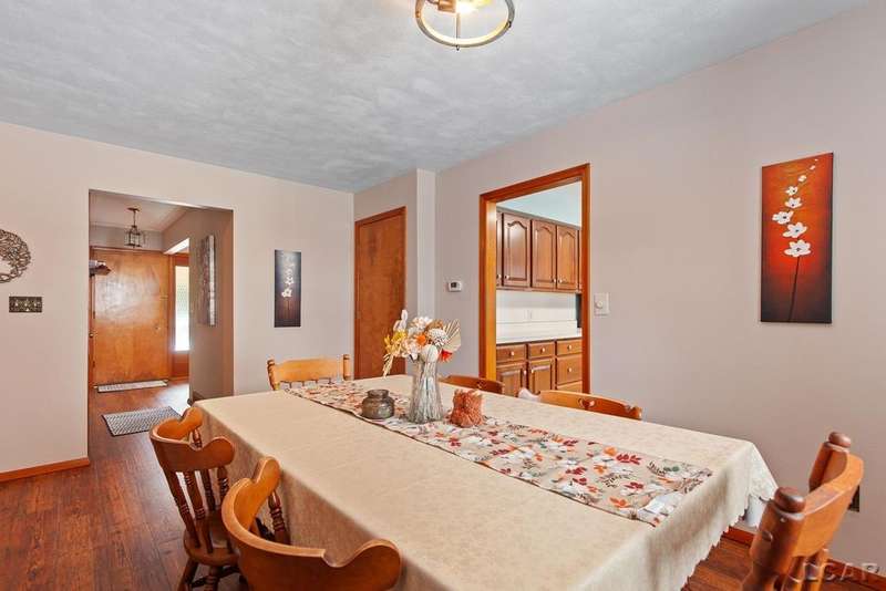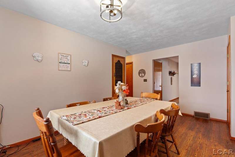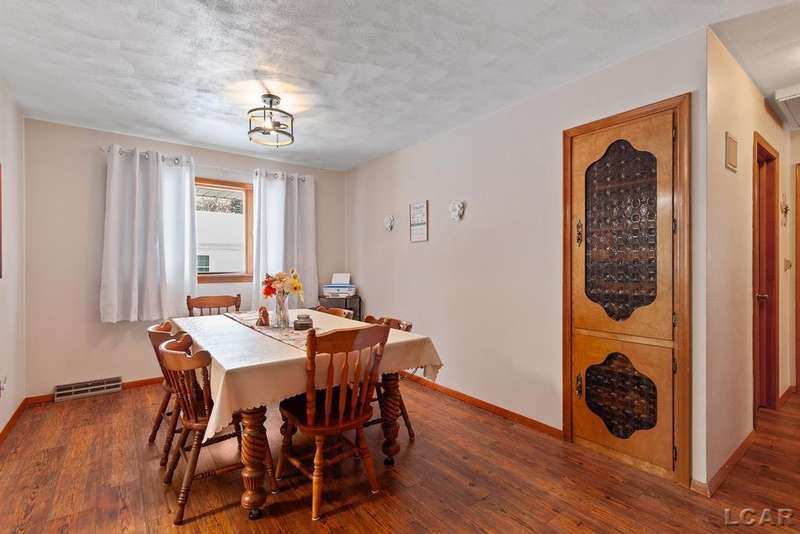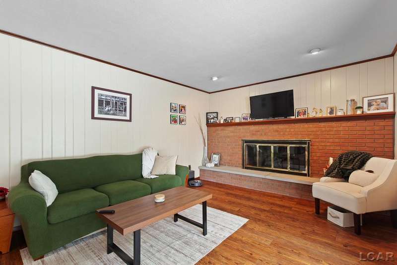 Welcome home to this charming and spacious 3 bedroom, 2.5 bathroom brick ranch nestled on a desirable corner lot in a quiet neighborhood. This home offers ample space inside and out for entertaining or relaxing with family. Inside you will find updated vinyl flooring throughout the first floor. Enjoy multiple living spaces, including a bright living room, a cozy family room with a fireplace, and a formal dining room perfect for gatherings. The home also features a full basement with an additional shower, offering plenty of potential for a home gym, recreation area, or extra storage. The home also features a 2 car attached garage, no more snow covered vehicles!