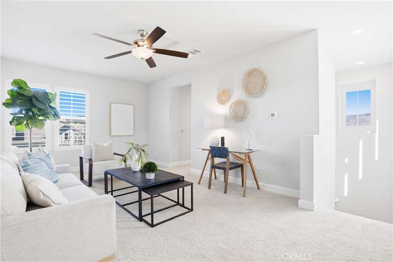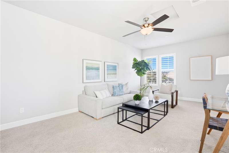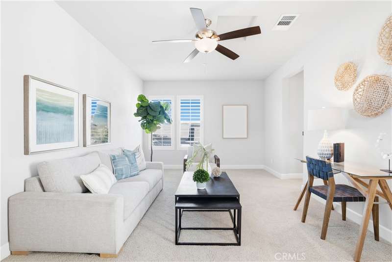 Welcome to your stunning residence in the exclusive Vida neighborhood, a premier 55+ Gavilan community within the award-winning Rancho Mission Viejo. This home radiates elegance and comfort, featuring a thoughtfully crafted open floor plan that effortlessly integrates the dining space, living room, and a generous kitchen island ideal for hosting and making cherished memories. The true wow factor of this home lies in the expansive feel of the great room. The sliding glass doors seamlessly blend indoor and outdoor spaces, creating a flawless transition that amplifies the sense of openness. Every element, from the upgraded leather-textured countertops in the kitchen to the plantation shutters and recessed lighting, reflects outstanding craftsmanship. Notable features include fully paid-off solar panels, custom built-ins, a spacious walk-in pantry, storage cabinets and racks in the garage, epoxy, ceiling fans, crown molding, plantation shutters, sliding barn door in primary, a primary walk-in closet, and a luxurious walk-in shower. To complete the package, a nearby trail offers a scenic 30-minute electric bike ride straight to Doheny Beach. Beyond the home, you'll enjoy a vibrant, resort-style lifestyle with exclusive access to private Gavilan 55+ amenities -- including The Perch, The Hacienda, The Outlook, The BBQ Barn, and The Getaway. Stay active and connected with a state-of-the-art fitness center, saltwater pool, spa, cabanas, bocce ball courts, yoga studio, fire pits, and social lounges. And when the grandkids visit? You'll have full access to Rancho Mission Viejo's award-winning all-ages amenities, arcade, community farms, fitness centers, indoor basketball gym, putting green, Sports park, tennis and pickleball courts, parks, and events that make this community unlike any other. Experience 147 Luneta Ln in Rancho Mission Viejo today.