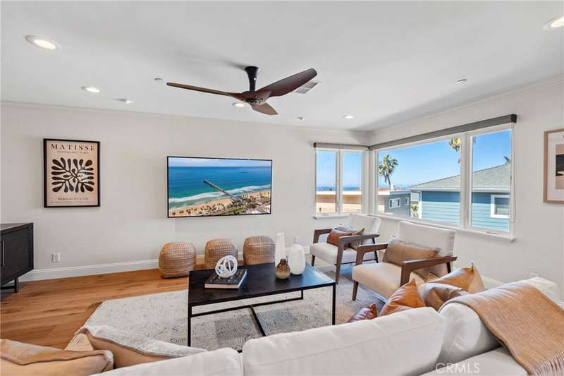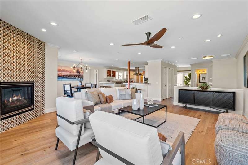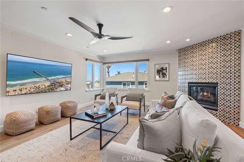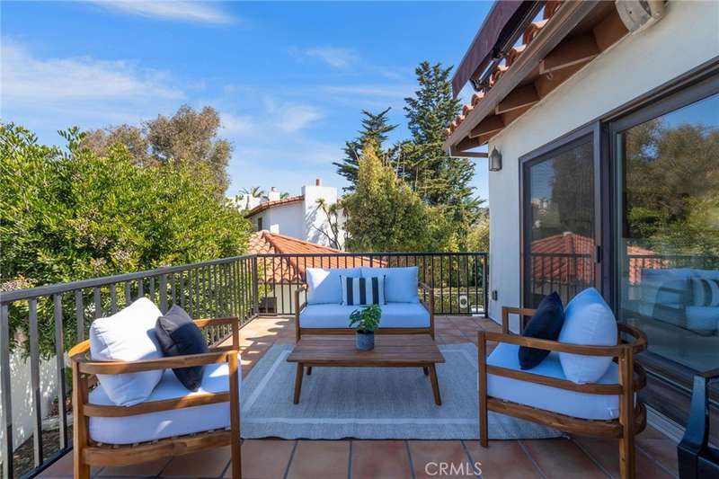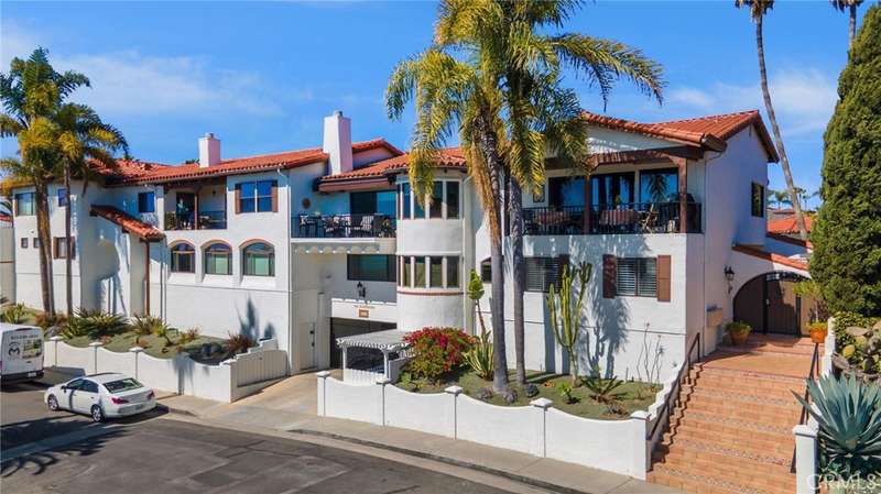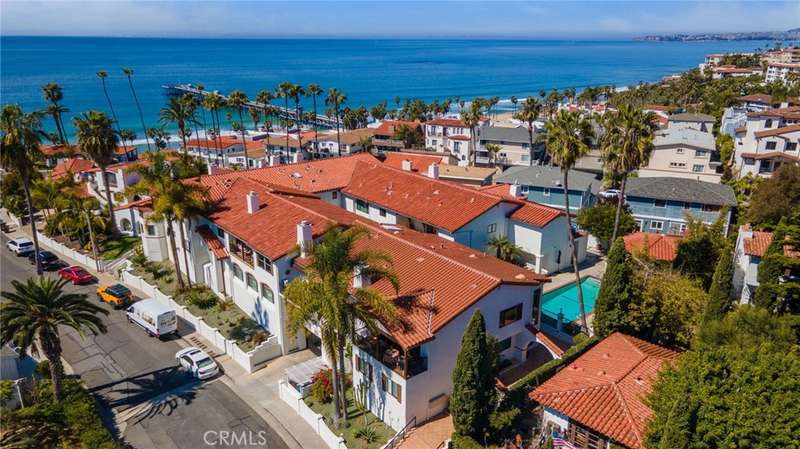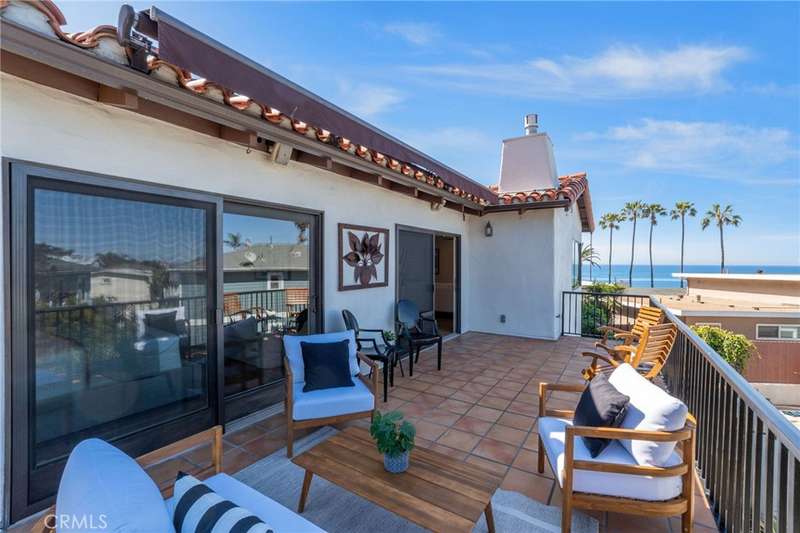 Welcome to your oceanfront sanctuary--a stunning Spanish villa in an exclusive gated community in the heart of San Clemente. This exquisite residence offers breathtaking whitewater views, mesmerizing sunsets, and an unparalleled beachside lifestyle. Located at 410 Cazador Lane #1, this 3-bedroom, 2.5-bath end-unit home (with no neighbors above or below) spans 2,381 sq. ft., blending Spanish charm with modern coastal luxury. Inside, a bright open floor plan features elegant French Oak engineered hardwood flooring, new carpet, and fresh paint throughout. The main-floor primary suite is a private retreat with a sitting patio, oversized walk-in closet, and spa-inspired ensuite featuring a jetted soaking tub, walk-in travertine shower, and dual sinks. A second main-floor bedroom with an ensuite bath and courtyard-facing patio provides another tranquil space, while a dedicated laundry room adds convenience. Upstairs, the grand living space is designed to maximize views of the Pacific Ocean, Catalina Island, and the iconic San Clemente Pier. A beautifully tiled fireplace adds warmth and elegance, while multiple outdoor patios invite you to relax and soak in the ocean breeze. The chef's kitchen is a masterpiece, boasting granite countertops, a center island with a DCS 5-burner gas cooktop, dual GE convection ovens, a built-in wine fridge, stainless steel appliances and walk-in Pantry. The dining area, enhanced by a charming chandelier, opens onto a Saltillo-tiled balcony with motorized awning--ideal for alfresco dining and sunset gatherings. A third bedroom and additional half bath complete the upper level. Resort-style amenities include a courtyard with a fountain, a sparkling pool and Jacuzzi, and a clubhouse with a pool table and ping pong. Additional conveniences include a dumbwaiter from the garage, a central vacuum system, and direct-access subterranean gated parking with two assigned spaces plus storage. Nestled on a quiet, one-way street, this extraordinary home is within walking distance (or just an easy breezy golf cart ride) from the beach trail, San Clemente Pier, and the charming downtown village filled with boutique shops, gourmet restaurants, and vibrant year-round events. Don't miss this rare opportunity--schedule your private tour today!