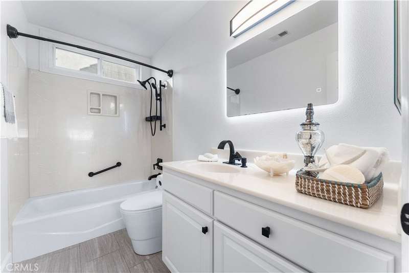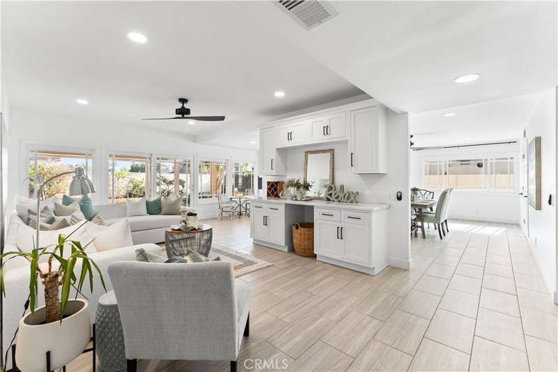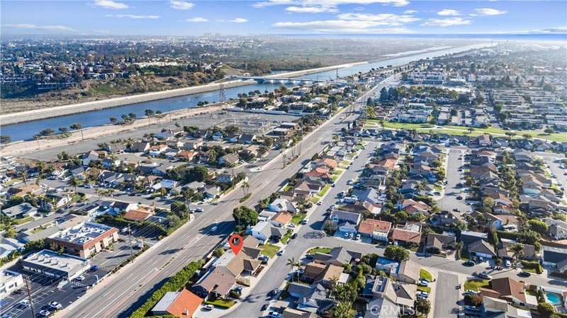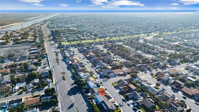 Imagine Amberwick Lane, where coastal days begin with ocean air and end under a glowing patio canopy. Tucked in a quiet cul-de-sac pocket just minutes from the sand, this re-imagined home marries single-level ease with flexible upstairs space, the kind of layout that makes everyday living feel effortless and entertaining feel iconic. Step through the entry into sun-washed living zones that flow like a great conversation: living to dining to an open kitchen and family room, all grounded by easy-care flooring and framed by slider to the backyard. The downstairs primary suite is exactly where you want it, on the main level, joined by two additional bedrooms and two baths so daily routines stay simple and private. All downstairs areas have been meticulously updated. Upstairs, a massive bonus room (with wall-to-wall built-ins) plus an extra half bath and bedroom offers options galore: media lounge, studio, office or the ultimate upstairs suite if you’re dreaming big. The kitchen keeps it updated and functional with marble counters, an upscale 5 burner gas cook top, designer series oven and built-in microwave, clean lines that play nicely with any style palette. Custom cabinets and back splash and a large island completes the look. Out back, the star of the show: a huge, covered patio, your year-round stage for alfresco dinners, morning espresso, and those golden Huntington Beach evenings that make you swear time slows down. The lot is generous, the vibe is private, and the possibilities are wonderfully open-ended. Around 1.5 miles to the coast, close to everyday essentials, one of the largest floor plans, and tucked into one of HB’s most beloved neighborhoods. This is the kind of address that turns “house hunting” into “welcome home.”