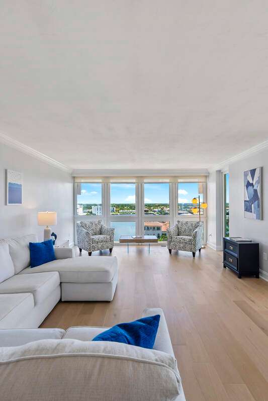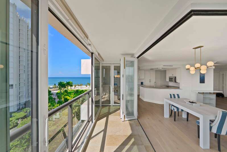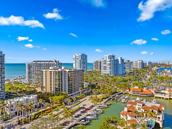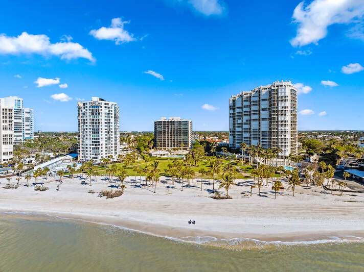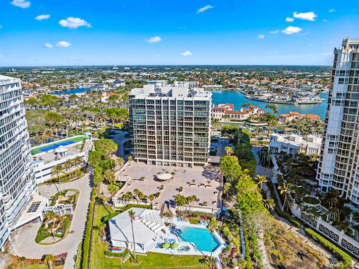 Bay & Gulf views galore! An exceptional opportunity awaits in the heart of Park Shore with this beautifully renovated, furnished condo offering a myriad of breathtaking views of the bay and stunning Gulf sunsets. Ideally located in the fabulous Allegro just steps from private Park Shore beach access and a short stroll to the upscale boutiques and dining of Venetian Village. Enjoy peaceful walks along the scenic beachfront promenade, immersing yourself in the quintessential Naples waterfront lifestyle. Inside, the thoughtfully redesigned interior reflects a relaxed coastal elegance, filled with natural light and a calming ambiance. The open-concept kitchen and family room serve as the heart of the home, seamlessly flowing onto a spacious veranda through bi-fold doors-perfect for enjoying panoramic views by day and night. With two spacious bedrooms and two full bathrooms, every detail has been curated for comfort and style. Brand new air conditioning installed in September 2025 also adds to a seamless transition into this beautiful condo. Located in Allegro, a full-service building with 24-hour front desk staff, residents enjoy access to exceptional amenities including a beachside resort-style pool and spa, fitness rooms, outdoor kitchen with BBQ grills, a recreation room, craft room, and meeting spaces. Fabulous & recent extensive and modernized renovations to the lobby, atrium, and common areas have been paid through assessments, with the Milestone Inspection and Structural Reserve Study already completed. Walk into luxury every time you come home! Additional highlights include two private guest suites for visiting friends and family, making this residence not just a home, but a lifestyle. A grand chance to live where many others vacation!