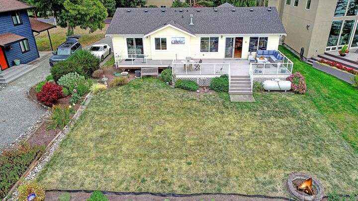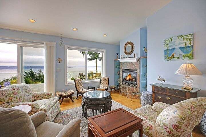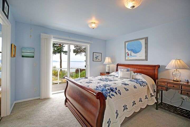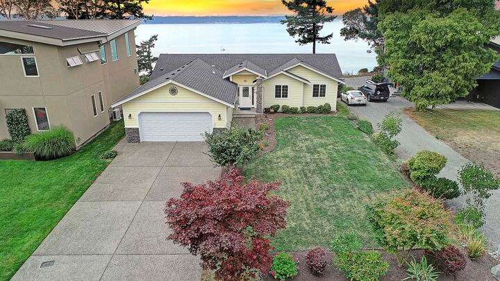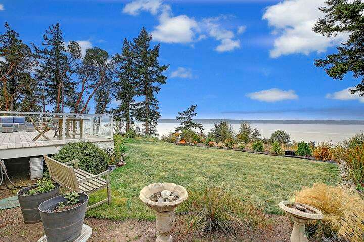 Experience island living at its finest in this west-side Camano view home, situated on 65 feet of level, high-bluff waterfront! Property stretches to the shoreline, offering a rare opportunity for true waterfront ownership. Custom-built, this rambler showcases thoughtful design & timeless craftsmanship, oriented to capture sweeping views of Saratoga Passage, Whidbey Island, Olympic Mountains, & west-side sunsets. Inside, the open-concept layout features granite countertops, hardwood floors, abundant windows, & seamless flow between living, dining, & outdoor spaces w/oversized deck extending the living space outdoors. From soaring eagles overhead to boats passing below, have a front-row seat to the beauty of the PNW. Welcome home!