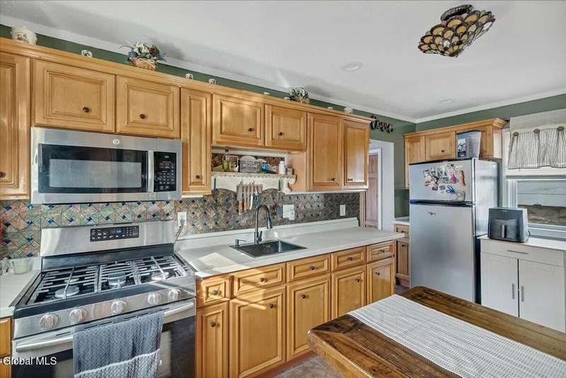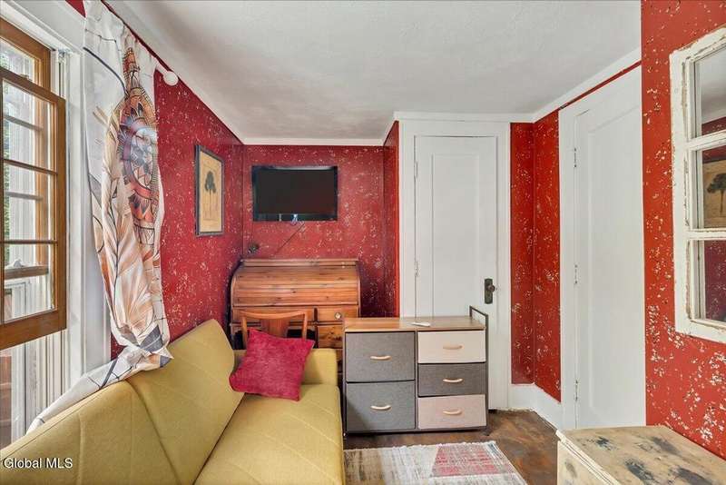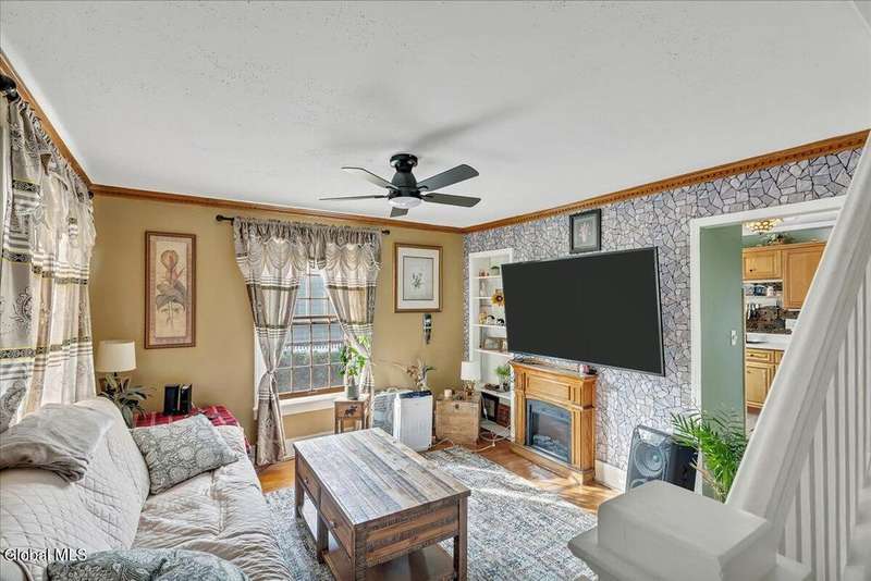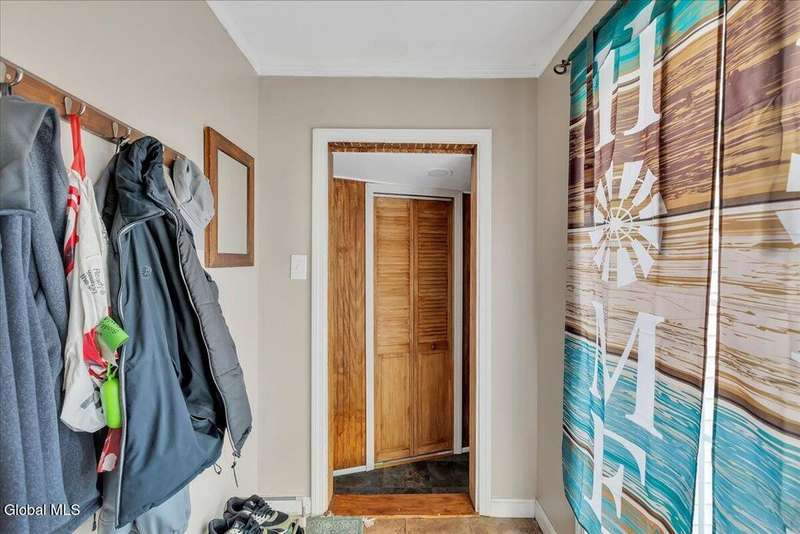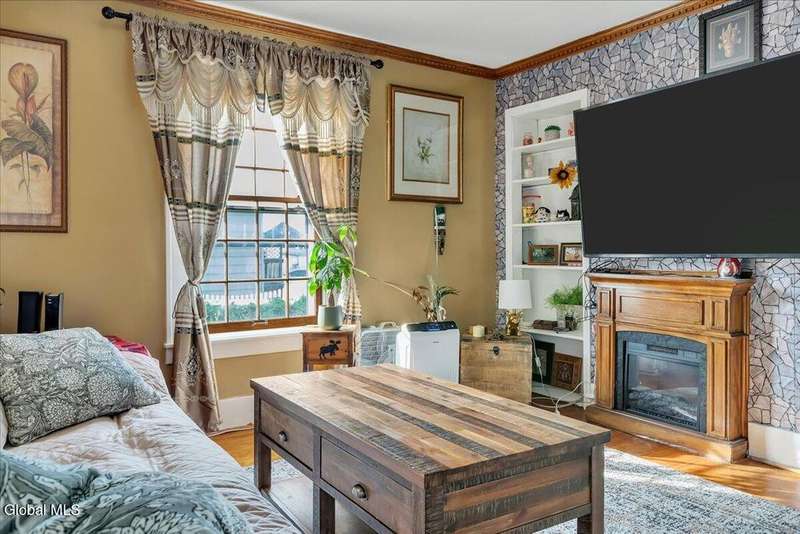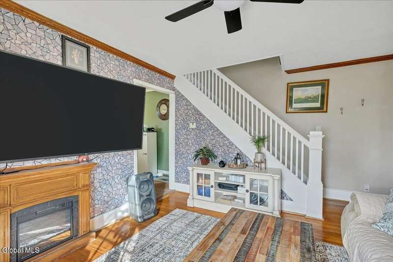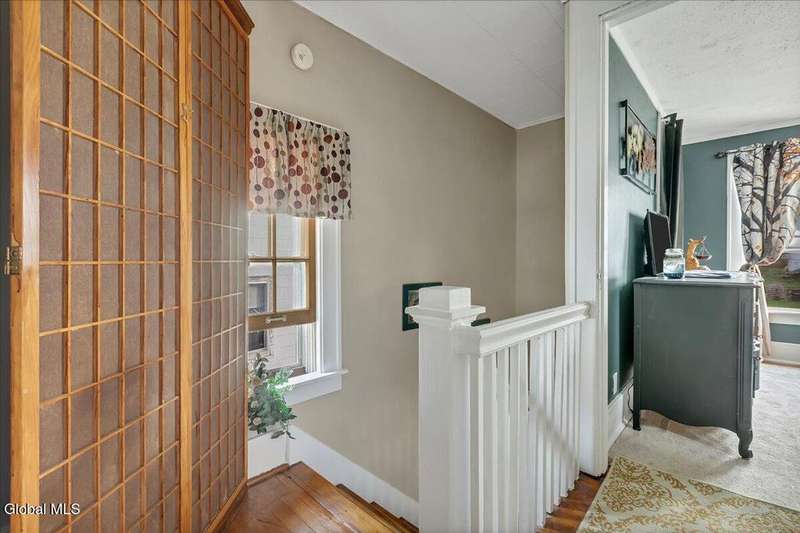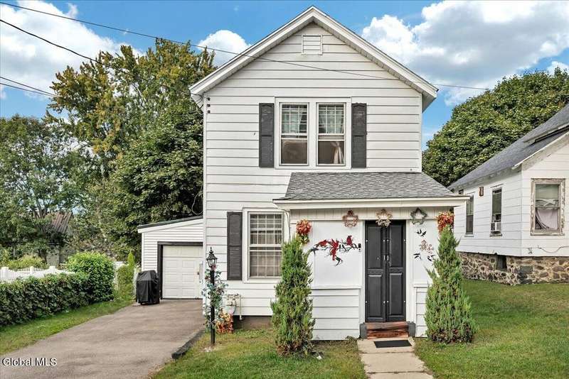 Charming, move-in ready home! The owner spared no expense bringing this property back to life, including a brand-new roof. The first floor features a welcoming living room, a kitchen with stainless steel appliances and a built-in coffee bar, a newly added half bath, and an enclosed back porch with a sliding glass door that opens to a brand-new deck. Upstairs, you'll find two bedrooms and a beautifully remodeled full bath with a spa shower. Additional highlights include replacement windows, hardwood floors, wood moldings, and original pocket doors?all freshly painted and stained throughout. The home also offers a 1-car attached garage. All appliances, 3 TV mounts, and 3 TVs are included. A must-see property!