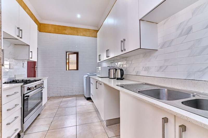 Look no further, this 6-Bedroom luxury Home is located in a safe Savannah Hills Estate. This much-loved home was built for a large family. It has beautiful street appeal, great natural light, and views of the green belt from the patio and the large main bedroom balcony. Downstairs: The entrance is impressive, with stained glass doors and double-volume ceilings. To the left, you will find an office space that is ideal for those working from home. The kitchen is offering additional cupboard space, a 6-plate gas hob, and a wash-up sink ?Çô perfect for a cooking enthusiast or private chef. There's also a laundry room. From the kitchen you'll be led to an open plan dining room/lounge/ TV area, which features a wood fireplace, perfect for cozy evenings during the colder months. This space seamlessly extends through aluminum stacker doors to the outdoor covered patio. The guest bedroom with an en suite bathroom and a separate cloakroom is conveniently available downstairs. Upstairs: You will find four bedrooms with 2 en suite bathrooms. The main bedroom is true to its name with a walk-in closet area as well as a full bathroom with a jacuzzi bath. The main bedroom also has a large balcony with serene views, ideal for downtime. The other 2 bedrooms share a bathroom and all bedrooms have built-in cupboards and tiled floors. There is an extra room ideal as a prayer room, study, or gym. This home offers you 2 auto garages that inter-lead into the house with lots of extra off-street parking spaces. A home of this nature is difficult to find. Situated in a Savannah Hills Estate that has 24-hour Security, where you can safely take walks to the kids' park and a Clubhouse. Located near Blue Hills Shopping Centres, a short drive away from Vodacom, Kyalami and the Mall of Africa, as well as the N1 Highways to Johannesburg, Sandton, Rosebank and Pretoria, and Gautrain transportation. With its massive space, modern style, and features, this property promises to be the canvas for creating cherished family memories for years to come. Good neighborhood and affordable levies. Don't be a loser, call me for an exclusive viewing.