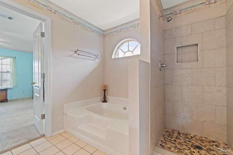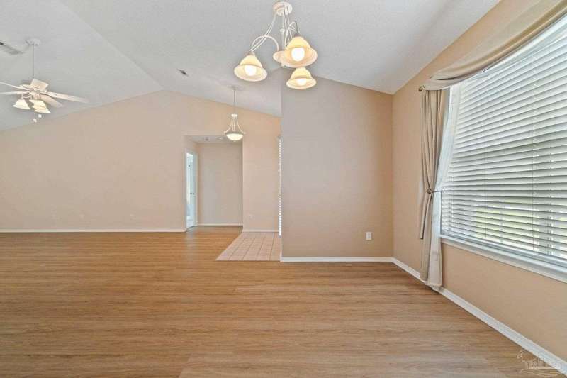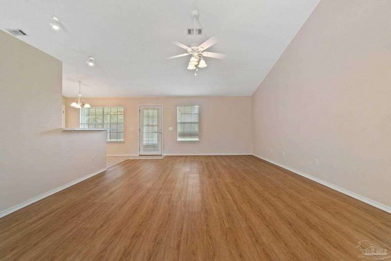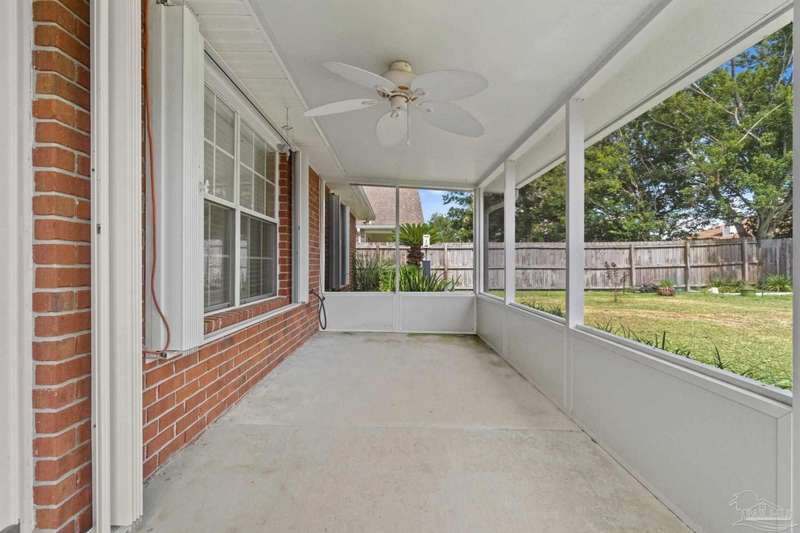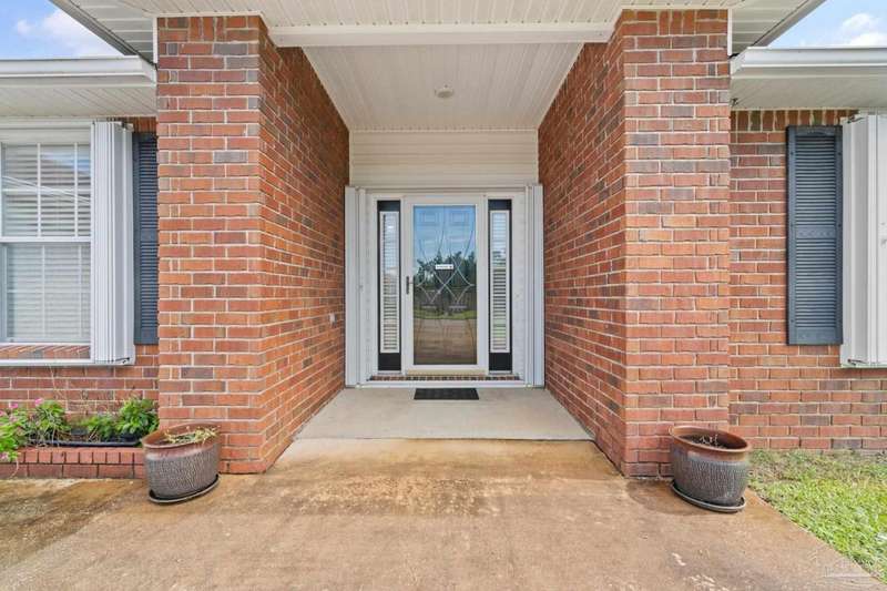 Welcome to 1204 Bartram Lane, a beautifully maintained 3-bedroom, 2-bathroom brick home offering 1,814 sq ft of thoughtfully designed living space just minutes from Pensacola NAS, the Intracoastal Waterway, and Northwest Florida's award-winning beaches. Tucked away in the quiet Seaglades North community, this home blends comfort, function, and location. It's split floorplan offers privacy between the primary suite and guest bedrooms, while the open living and dining areas create a spacious flow for everyday living or entertaining. Inside, you'll find laminate flooring that stretches throughout the large living room, dining area, and hallways, providing a clean and cohesive look. The kitchen and bathrooms feature durable tile flooring, combining practicality with easy maintenance. The primary suite includes a recently updated shower, and a large walk-in closet with a window overlooking the front yard-bringing in soft natural light. Step outside to enjoy your screened-in back porch overlooking a fully privacy-fenced backyard, perfect for relaxing, grilling, or letting pets roam freely. The double car garage adds convenience and ample storage. From Blue Angels flyovers to quick access to Big Lagoon State Park, Perdido Key, and Gulf Coast boating and beaches, this home offers a lifestyle that's both peaceful and connected to all the best Pensacola has to offer.