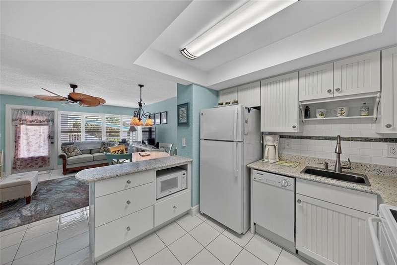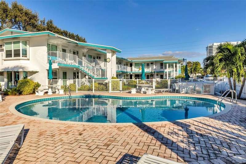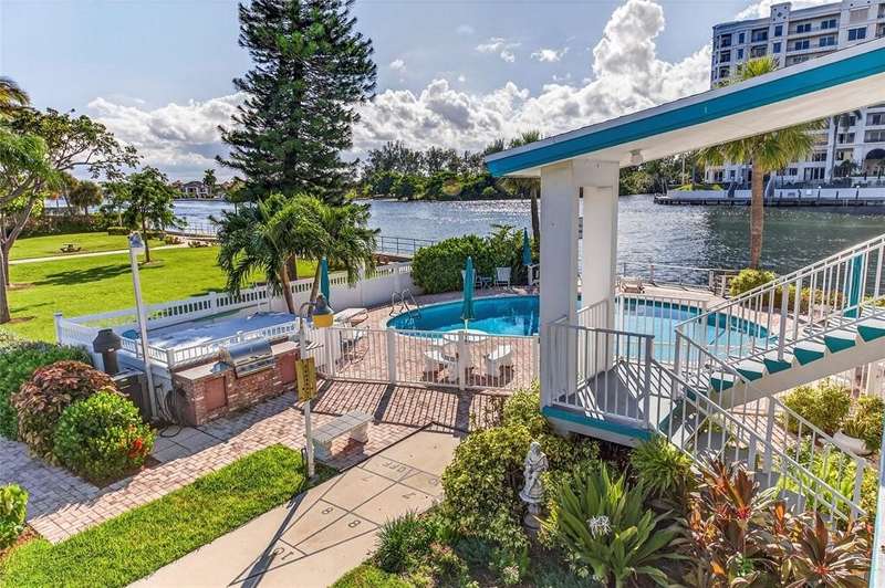 Charming boutique building with only 16 units. Enjoy the boats passing by on the Intracoastal every day from the heated community pool and patio. Move right into this renovated 1BR/1BA unit on the second floor. Open kitchen with breakfast bar has new cabinets & quartz countertops. Impact windows. Renovated Bathroom. Just a block to the beach and close to dining, etc. City Park next to the building. Amenities include common laundry, storage room, BBQ area, shuffleboard, drop off/pick up community dock. Maintenance fee including Land Lease is $1,540/quarter. Tray ceiling in kitchen. Sorry no pets and no leasing. By-Laws say owner must be 45 to purchase/live at Twin Waters.