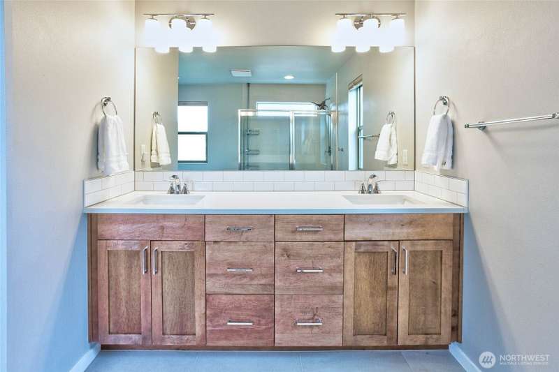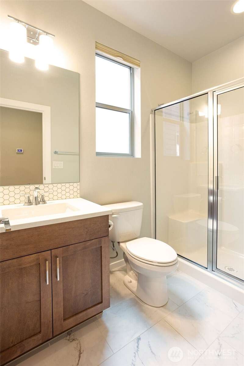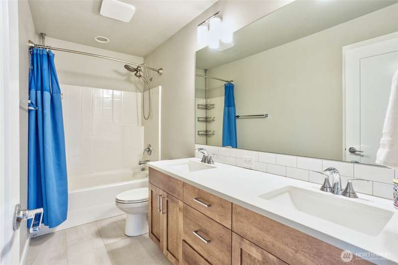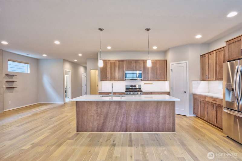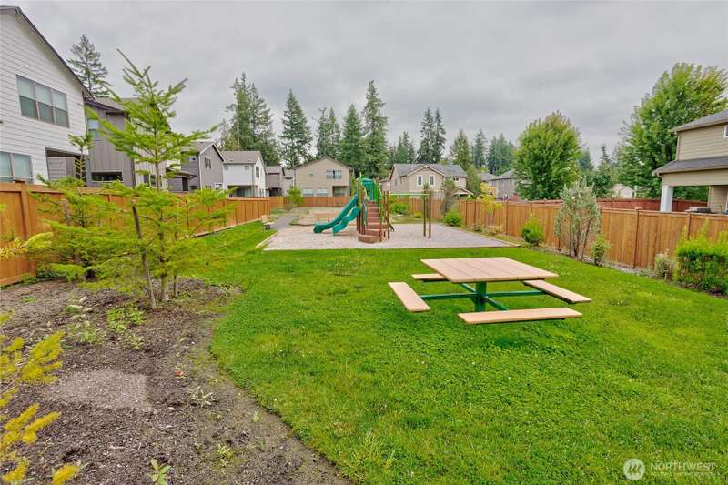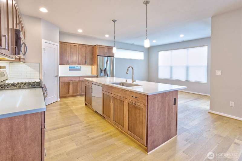 5-bedroom home built by Conner Homes in 2022. Ideally located, this thoughtfully designed home features a light-filled open layout, gourmet kitchen with quartz countertops, and a main-level bedroom with 3/4 bath—perfect for guests or multi-generational living. Upstairs offers a spacious primary suite with walk-in closet and luxurious 5-piece bath, plus 3 generous secondary bedrooms and a versatile bonus room/loft. Extensive hardwood floors, custom blinds throughout, smart home technology, and central A/C for year-round comfort. Outdoor living includes a covered patio with gas BBQ stub, fully fenced low-maintenance backyard and front yard is included in HOA. Community Park and neighborhood vanpool round out this incredible offering.