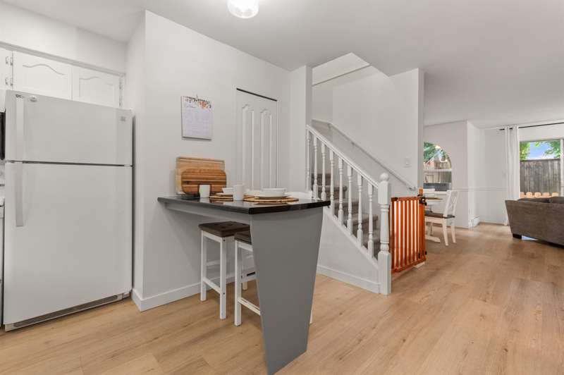 Welcome Home to this fantastic 3 bed, 2 bath townhome in The Gateway complex. Extensive renovations have been done throughout including flooring, lighting, new bathrooms, and sundeck in the backyard. Great layout that feels like a home with an open main level floorplan with spacious living/dining room with direct access to your private fully fenced backyard. Upstairs features Primary bedroom with a walk in closet & cheater 4 piece ensuite + 2 more spacious bedrooms. Single car garage + parking pad right outside your front door. Well run & proactive strata. All Poly B has been removed from the complex + new watermain, all new asphalt paving. 2 pets allowed (2 dogs or 2 cats or 1 dog & 1 cat). Quick & easy access to transit, shopping, schools.