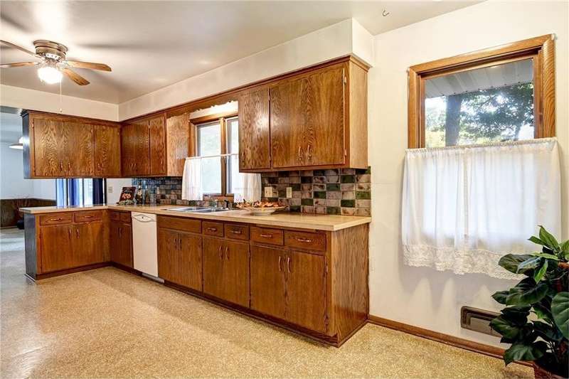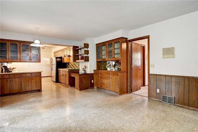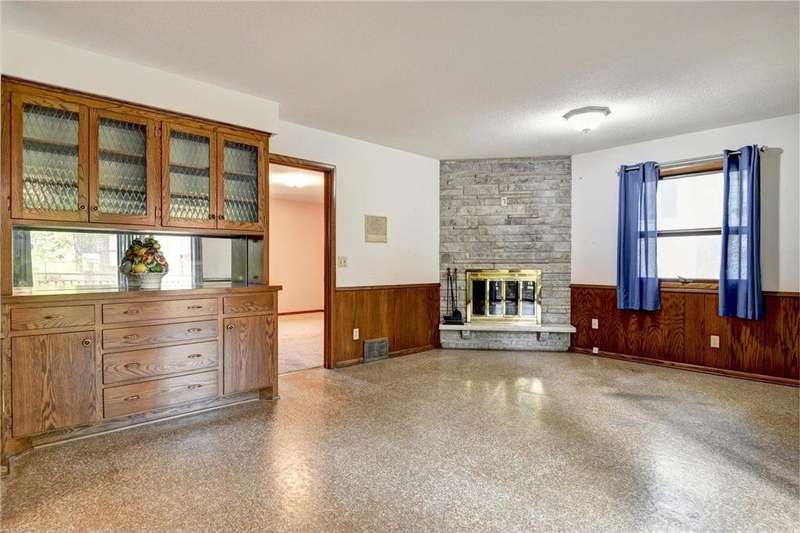 Spacious split-entry home with mid-century character and modern potential, offering 1,856 Sq. Ft. on the main level. The floor plan includes a combined kitchen, dining, and family area with a corner fireplace and access to deck. Three bedrooms with hardwood floors are located on one side of the home, while the private ensuite bedroom-featuring a walk-in-closet and corner fireplace- is tucked off the family room. The lower lookout level provides flexibility with a kitchenette, bedroom, bath and "L" shaped amusement room with a fireplace - ideal for extended living or guest space. An oversized two-car garage with double doors has access to the backyard. Much of the home reflects its original mid-century style, giving new owners the opportunity to personalize updates while enjoying solid construction and a sought-after neighborhood. The treed corner lot is near parks, dining, shopping, school, and bus line, with convenient access to downtown Minneapolis.