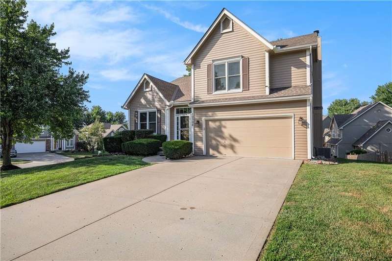 You will not find a better value in Amber Meadows, this well-maintained home is packed with thoughtful updates and endless living space. Major improvements include a brand-furnace (2023) and air conditioner (2024) and fresh exterior paint (Fall 2024). All windows have been replaced, boosting energy efficiency and curb appeal. Inside, youll find four generously sized bedrooms, each with its own walk-in closet. The open-concept main level features hardwood floors, a cozy gas fireplace, and an updated kitchen with stainless steel appliances, a walk-in pantry, and an eat-in dining area. Double doors off the kitchen open to an expansive deck with fresh stainperfect for outdoor gatherings. A bonus den or flex space just off the main living area is ideal for a home office, playroom, or dining room. Upstairs, the spacious primary suite impresses with a large tiled shower with glass insert, dual vanities, and tiled flooring. Convenient second-floor laundry makes daily living easy. The finished walkout basement offers a massive rec room, a third full bathroom, and access to a large brick paver patio for even more outdoor living. Enjoy neighborhood amenities including two pools, walking trails, playgrounds, a sport court, and two stocked ponds. All within the sought-after Liberty North High School boundaries.