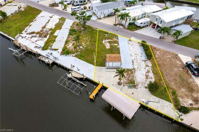 One and a half lots combine to give you options for a new home with 75' of Water-Frontage! There is an 8,000 lb. COVERED Boat-Lift in place, 2 Docks, AND Davits as well! This property is on sewer, giving you even more buildable space than surrounding properties. There is a shed on-site already. The owner was in the process of placing a new manufactured home on the property, gaining you site work, Including a new Electric Service Box, and more. The savings add up quickly with the Impact fee waived on a new manufactured (and only the difference due between manufactured and Single Family). There is even a permit for a new manufactured home that you could capitalize on by submitting your home plans to Lee County. The opportunity to spread out and live the "Island Life" is waiting...