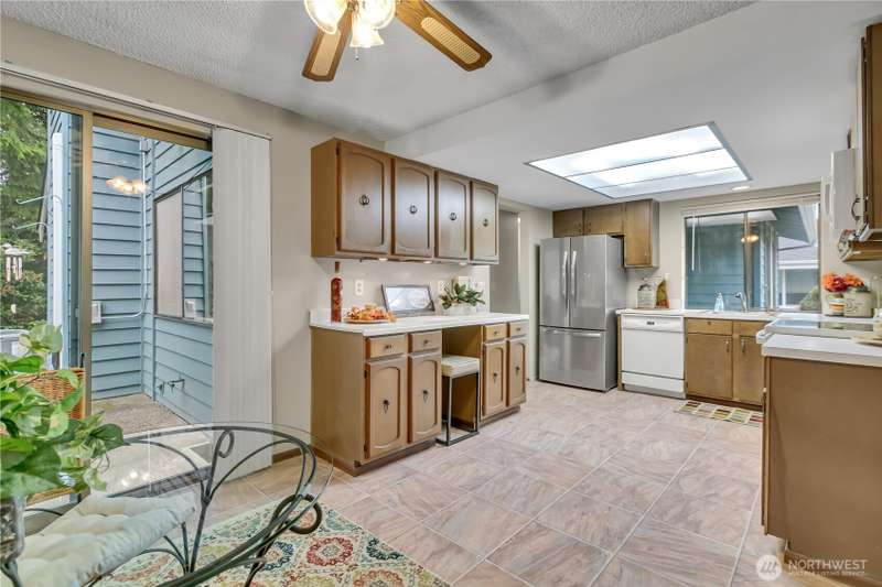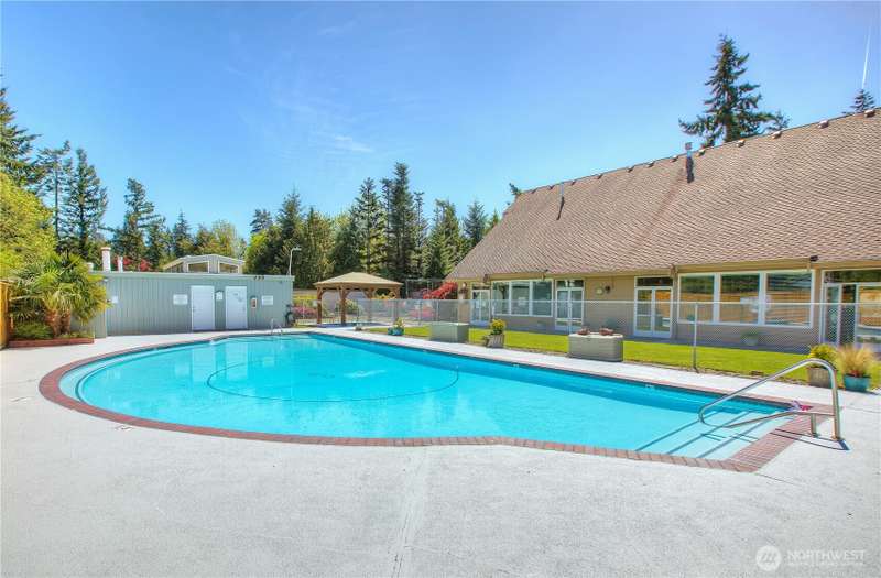Welcome to Huntington Park! This well maintained 2 bedroom rambler offers light and bright living spaces, an inviting kitchen with eating area, and a spacious primary suite with private bath. Beautifully landscaped grounds, with lawn service, complement the comfortable single-level layout with abundant windows. This home has many skylights and solar tubes too. Huntington Park is a vibrant 55+ community where neighbors gather for clubhouse events, games, classes, and daily coffee. Enjoy the pool, library, RV parking lot, and over 2.5 miles of greenbelt trails to explore. This home is adjacent to the trails, just outside your back door and a plus for added privacy!. Minutes from downtown Des Moines, the marina, and Saltwater State Park.