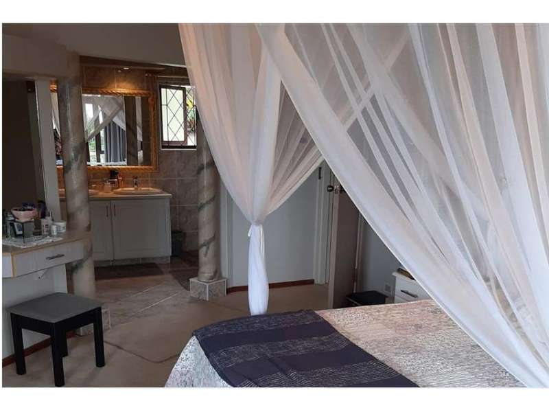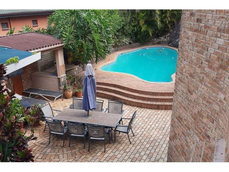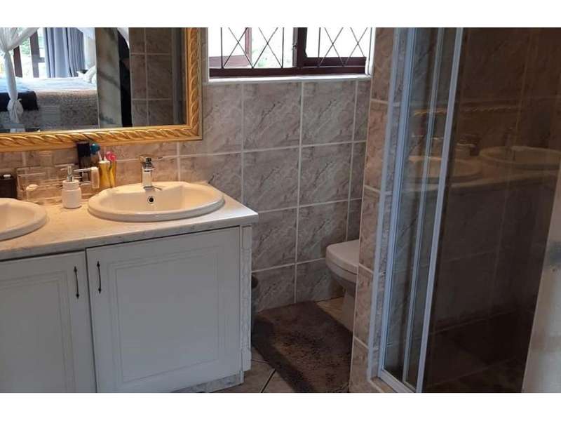 A stunning family home, that has everything you could wish for! A face-brick three bedroom, double story home with 2 on suite bathrooms, a walk in dressing room, balcony with lovely sea views on the upper level. Downstairs is the main lounge, a TV lounge, dining area and open plan kitchen. Very modern design with marbled pillars throughout the house. A study, laundry room and a scullery off the kitchen, complete the lower level, leading into the double garage. Above the garage is a self-contained flat and in addition there large land area suitable for building a second dwelling. There is sparkling blue pool and entertainment area, shrouded by large natural rocks. The house is equipped with solar panels, invertors and a 13Kva diesel generator coupled to the house which are optional. Two 5000L water tanks, with filters plumbed into the house and flat's supply. This is a remarkable property, offering everything you need! Well maintained and in a great area in Ramsgate, a few 100 meters from the main blue-flag beach.. *solar & inverter system is optional extra.