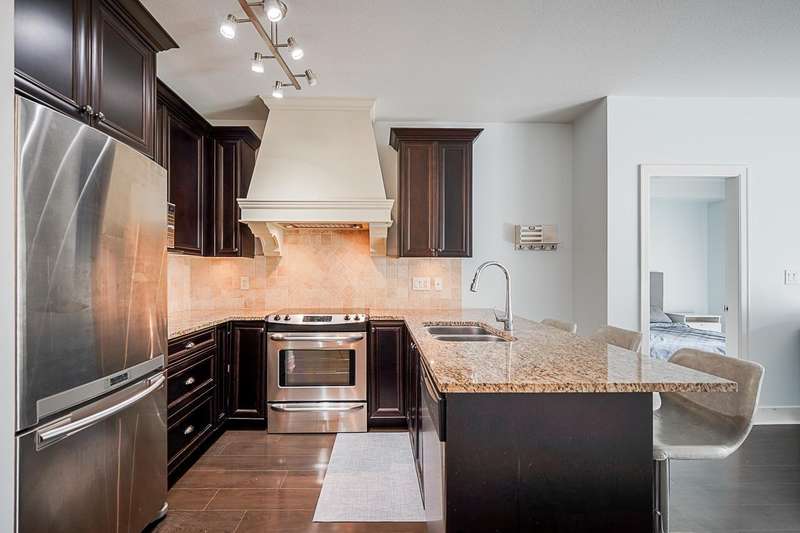 Welcome to Salix, where homes rarely hit the market and we have a 2 bed, 2 bath, 845 sqft home in the Georgian-inspired community offering one of the most sought-after layouts. Both bedrooms feature their own ensuite and private balcony! The dream kitchen is equipped with stainless steel appliances, granite countertops, and custom wood cabinetry, flowing seamlessly into a bright, high-ceiling living area with large windows that fill the space with natural light. This home includes 1 Parking and 1 Storage Locker. Ideally located in a vibrant neighbourhood and within walking distance to Willowbrook Mall, parks, schools, restaurants, and more, this home perfectly combines comfort, style, and convenience. Move-in ready in a highly desirable community...don't miss this exceptional opportunity! (id:58403)