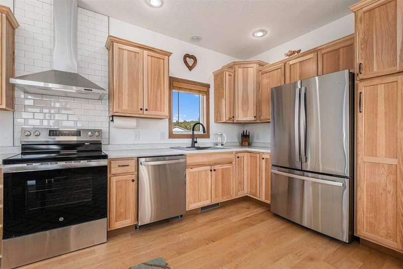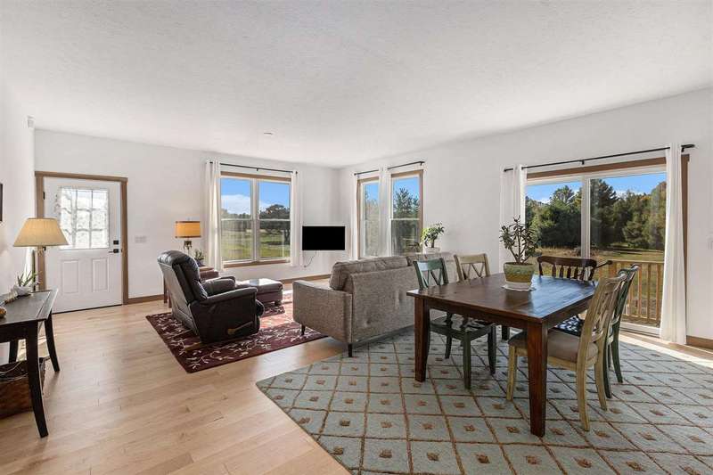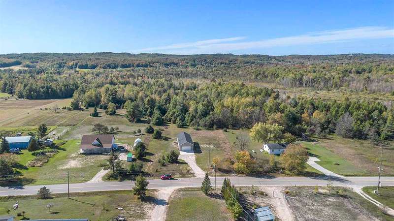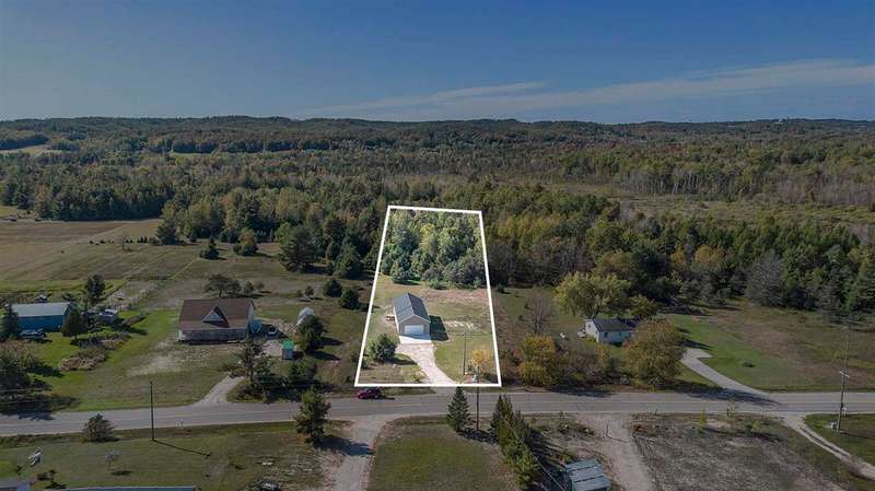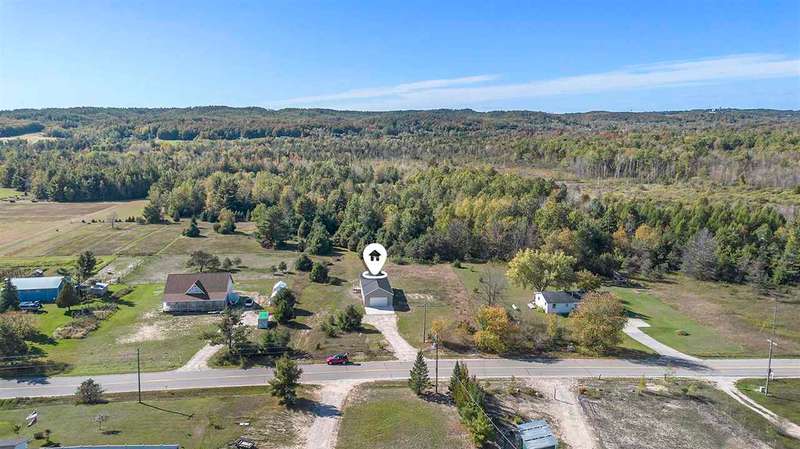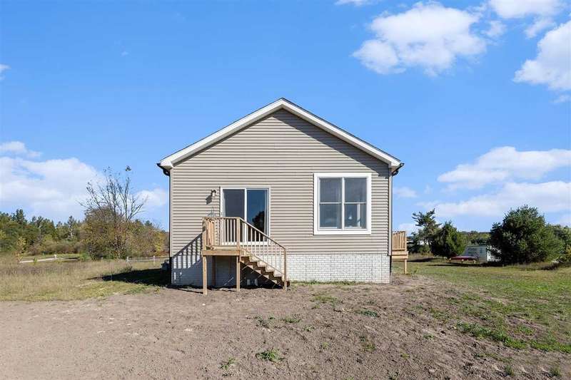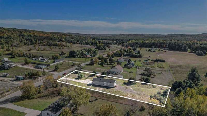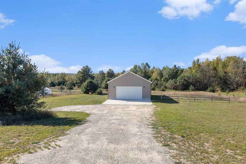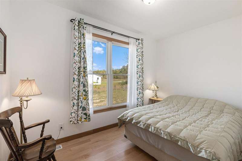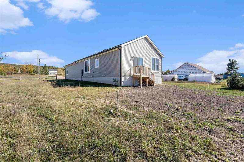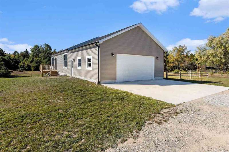 Step into this newly built 2024 ranch-style home, featuring a bright, open floor plan with 9-foot ceilings and warm maple hardwood floors throughout the main living areas. The kitchen is beautifully appointed with Hickory cabinets, adding both style and character. The main bedroom includes a spacious walk-in closet and thoughtfully designed storage. The bathroom offers in-floor heating and tile flooring for comfort and easy maintenance, while the attached 2-car garage provides convenience and extra storage. Set on 3.2 peaceful acres in a quiet countryside setting, walking paths have been created to enjoy the natural surroundings. Constructed with energy-efficient 2x6 exterior walls, Anderson windows, and a sliding door, the home also includes a full basement with two egress windows and plumbing for a second bathroom--ready to be finished into additional bedrooms or living space, offering flexibility for the future. Located just 5.6 miles from downtown Petoskey, this property combines a peaceful setting with easy access to town.