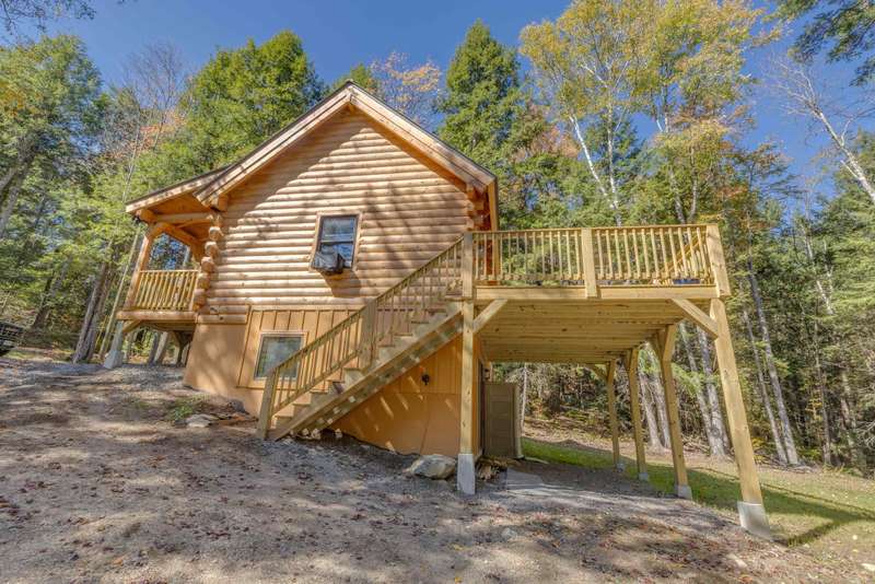 Brand new Coventry log home in the Mountain Lakes District! Turn-key offering, sold completely furnished and ready for immediate occupancy. Sited on a private wooded lot with a protected buffer in the back yard, you will find this charming 2-BR, 2-BA log home. The main level features an inviting, open-concept kitchen/living area with a vaulted ceiling, the primary bedroom, and a full bathroom, complete with a Bosch washer and dryer. Modern kitchen equipped with a gas range and new Whirlpool appliances. Upstairs is a great loft space with 2 beds and a desk, ideal for remote working. The lower level features an additional bedroom, a 3/4 bathroom, a storage closet, and a full walk-out family room, enhancing the flexibility and efficiency of the floor plan. Everything is brand new with low maintenance in mind, with features like on-demand hot water and a metal roof—a huge 12'x22' deck off the back, ideal for taking in the quiet setting or hosting gatherings. Tastefully and thoughtfully furnished, these additions enhance the appeal and convenience for the new owner. Enjoy access to the lake, private beach, pool, and other recreation. Year-round rentability and close access to Ski areas make this a tremendous investment opportunity or use it as a primary residence. 30 minutes to the Lincoln and Franconia areas, and only 10 minutes to area shopping and hospitals. Quick access to I-91, I-93, and many White Mountain attractions. Schedule a private showing today and see for yourself!