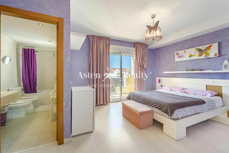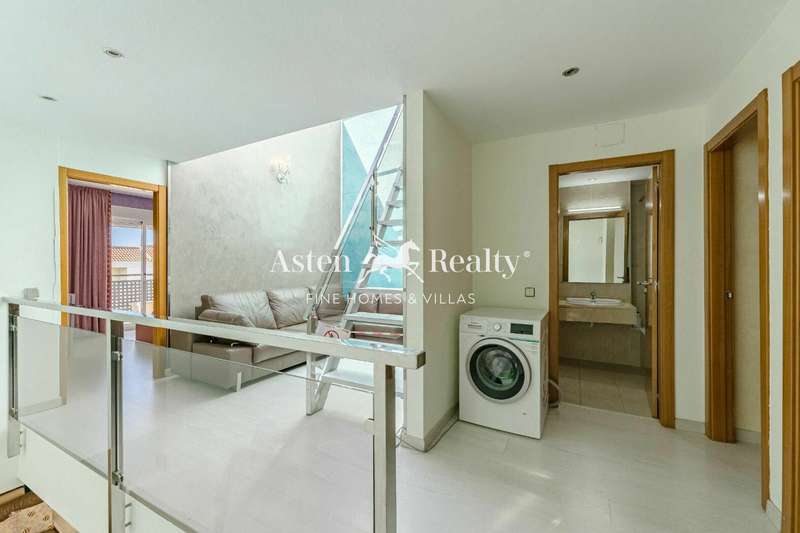 On the first floor, there are 3 bedrooms with fitted wardrobes, two bathrooms, one of them en suite. There is a spectacular skylight with electric awning where you find the stairs that go up to the furnished roof terrace of the property, from where you can enjoy the jacuzzi while contemplating the sky and the sea.
