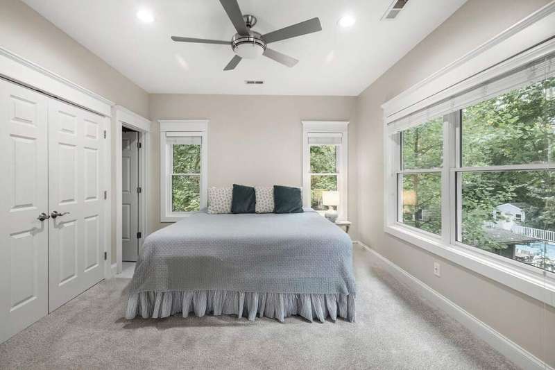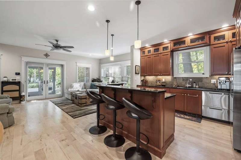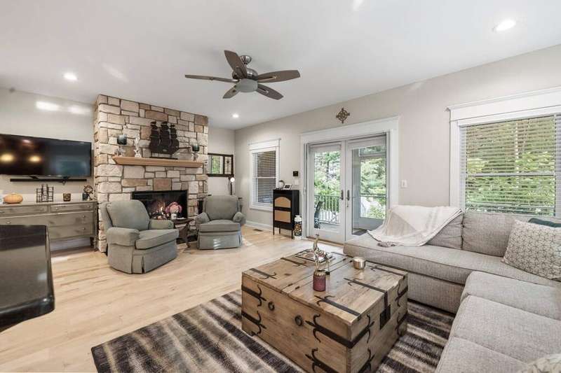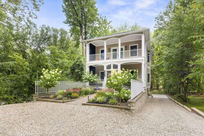 Just steps from the private sands of Gordon Beach, this architectural coastal cottage captures the essence of Harbor Country living with its signature double screened porches and timeless design. This home blends craftsmanship with modern comfort. The main level is anchored by an open great room with soaring ceilings & a stone fireplace, flowing into a gourmet kitchen appointed with upgraded appliances and custom Ash hardwood floors. Thoughtful details include a second stone fireplace in the upper level primary, expansive decks, and two levels of screened porches that blur the line between indoors and out. With 4-5 bedrooms and 3 full baths, the layout provides flexibility for guests or multi-purpose living. A generous lower-level bonus room offers a second gathering space, while the two-car garage is equipped with an EV charging station. Low-maintenance exterior finishes ensure the home lives as easily as it entertains!