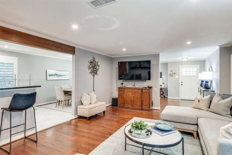 Welcome to Caprock CircleLochwood living at its finest!From the moment you spot the cheerful tangerine front door, this home radiates charm. Nestled on one of the most sought-after streets in the neighborhood, this beautifully updated pier-and-beam residence combines timeless character with todays modern conveniences.Step inside to gleaming oak hardwood floors, a bright and open layout with two spacious living areas, a formal dining room, and a kitchen designed for both style and function. The apron-front sink, gas range, and seamless flow into the family room create the perfect space for entertaining.The primary suite offers a spa-inspired retreat with a frameless glass shower and designer tile, while the guest bath shines with its floating vanity and chic finishes. A flexible bonus space at the back of the home is ready to serve as your office, gym, or playroom.Outdoor living is a highlight hererelax in the shady backyard with turf, multiple seating areas, and plenty of room for gathering with friends.