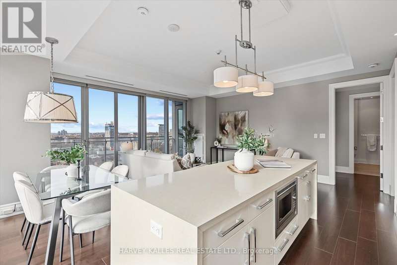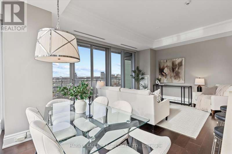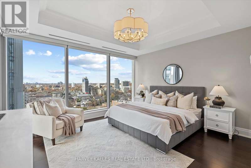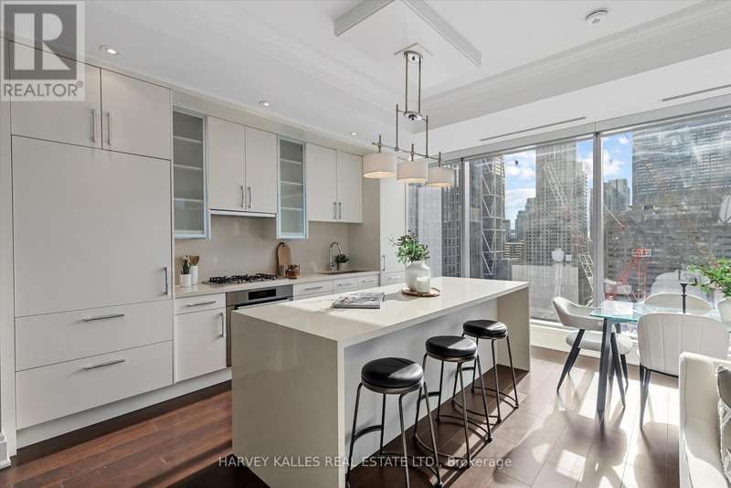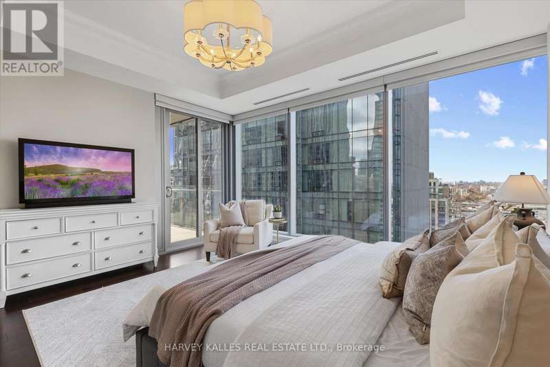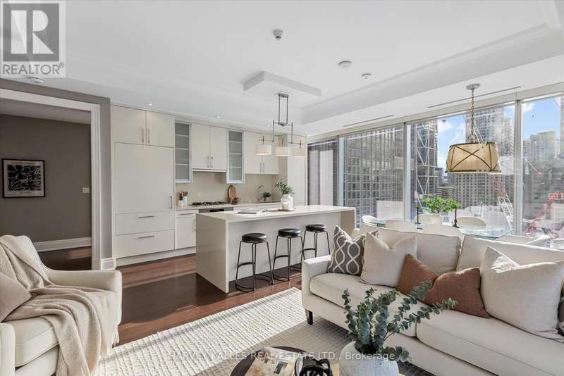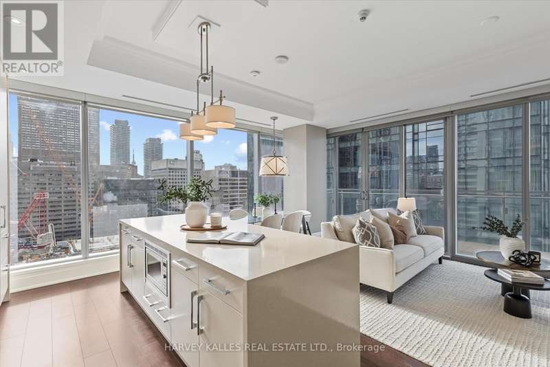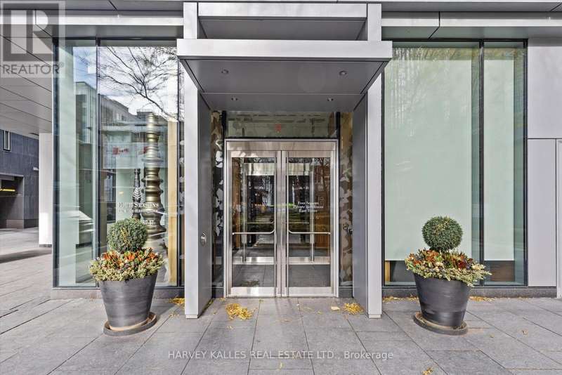An emblem of refined living in one of Toronto's most prestigious locations, Suite 1805 at 55 Scollard stands within the iconic Four Seasons Private Residences. Here, architectural elegance, hotel-inspired service, and effortless sophistication converge in an extraordinary two-bed, two-bath home spanning approximately 1,265 sq.ft. From the moment you arrive, a sense of calm refinement takes hold. Expansive floor-to-ceiling windows flood the suite with natural light, highlighting clean lines, rich finishes, and a timeless modern aesthetic. The open-concept living and dining areas are designed for both intimate relaxation and stylish entertaining, all framed by sweeping south-west views of the Yorkville skyline. The chef's kitchen seamlessly blends form and function with integrated Miele, Sub-Zero, and Panasonic appliances, a gas range, polished granite surfaces, and abundant cabinetry, perfect for casual mornings or elegant evenings in. Enjoy your coffee at the granite waterfall island, thoughtfully designed with additional storage and generous bar seating. The primary suite is a serene retreat featuring a spa-inspired five-piece ensuite with a deep soaking tub, glass shower, double vanity, and refined marble finishes. A custom walk-in closet with sleek built-ins and a pocket door elevates both style and practicality. The second bedroom offers versatile space for guests, work, or leisure. Residents enjoy exclusive access to a curated selection of amenities and full hotel privileges: 24-hour concierge and valet, a world-class fitness centre, indoor pool, and direct connection to the Four Seasons Spa. Steps from Yorkville's premier boutiques, acclaimed dining, and parks, this address delivers the ultimate balance of luxury and convenience. Extras include: one owned parking space and locker, ensuite laundry in the primary suite, automatic roller blinds throughout, and more. A truly exceptional opportunity to own within Toronto's most iconic residence. (id:6370)