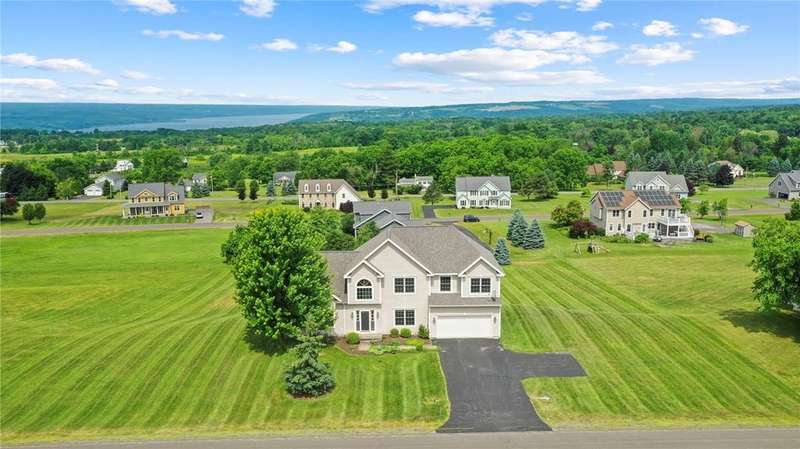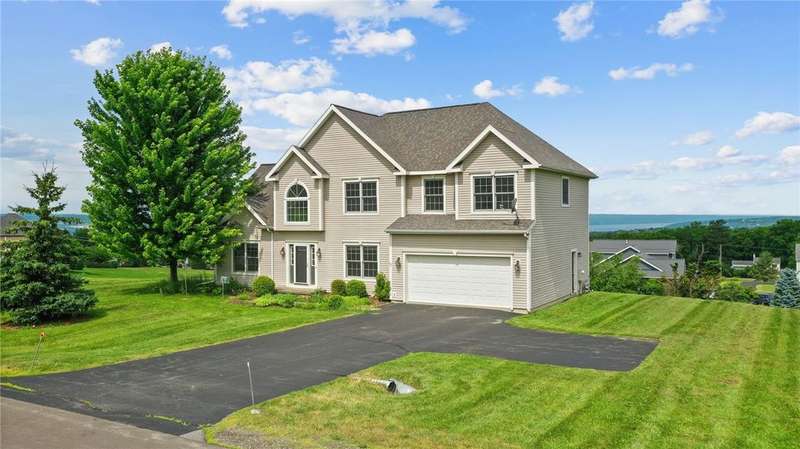 Welcome to 44 Aspen Way, a light-filled home nestled on a full acre with lake views and open skies?offering comfort, space, and serenity in the heart of the Lansing School District. This 4-bedroom, 2.5-bath home provides over 2,500 square feet of well-designed living space, ideal for both daily living and entertaining. Step inside to a dramatic two-story foyer that leads to an open, sunlit main level. The eat-in kitchen features ample counter and storage space, flowing seamlessly into the formal dining room and cozy family room with a gas fireplace. A window over the sink offers a lovely view and natural light, while a convenient laundry room just off the kitchen adds everyday ease. Sliding glass doors open to a back deck with beautiful views of Cayuga Lake?an ideal setting for morning coffee or sunset unwinding. Upstairs you'll find four spacious, light-filled bedrooms?three with generous closets and all with large bright windows. The primary suite includes a walk-in closet and a private ensuite bath, while the remaining three bedrooms share a well-appointed hall bath. The finished lower level provides excellent additional living space with a wet bar area, hang out space, half bath, and a flexible room perfect for a work shop or craft space. From here, walk out into the expansive grassy yard?ready for gardens, games, or gatherings. The home is move-in ready, with a solid and well-maintained structure, and invites your personal touch with updates like fresh carpet or paint. With central air and an attached two-car garage, it combines practicality with charm. Located in a lovely, walkable community this home truly checks all the boxes. Don't miss your chance to experience space, light, and lake views in one of Lansing's most desirable neighborhoods?schedule your tour today!