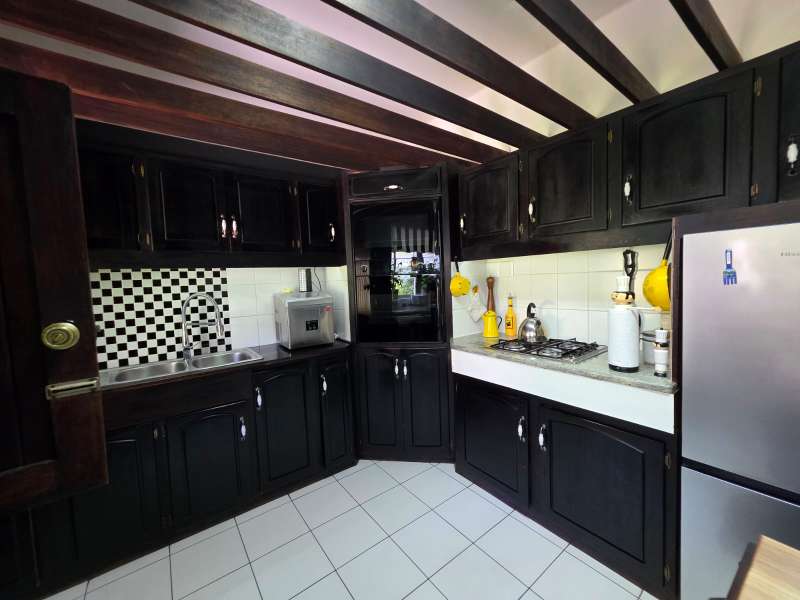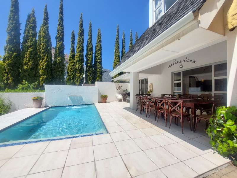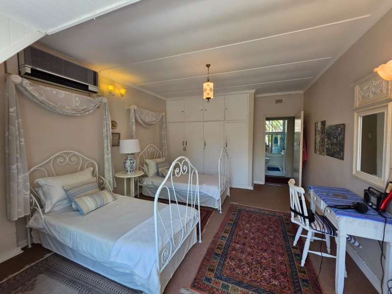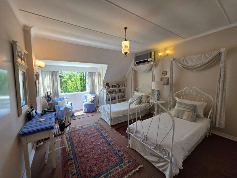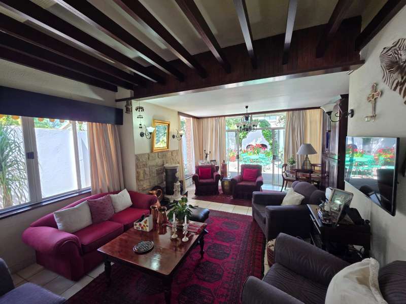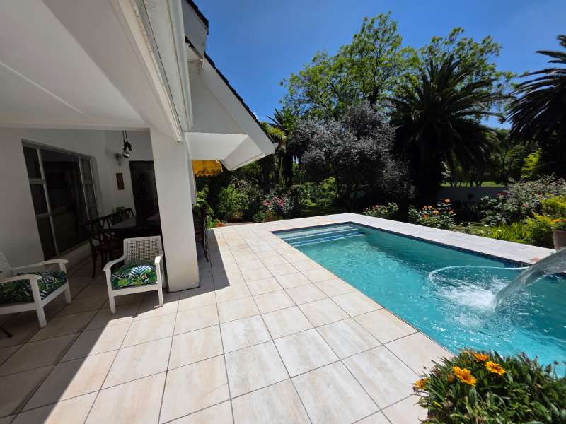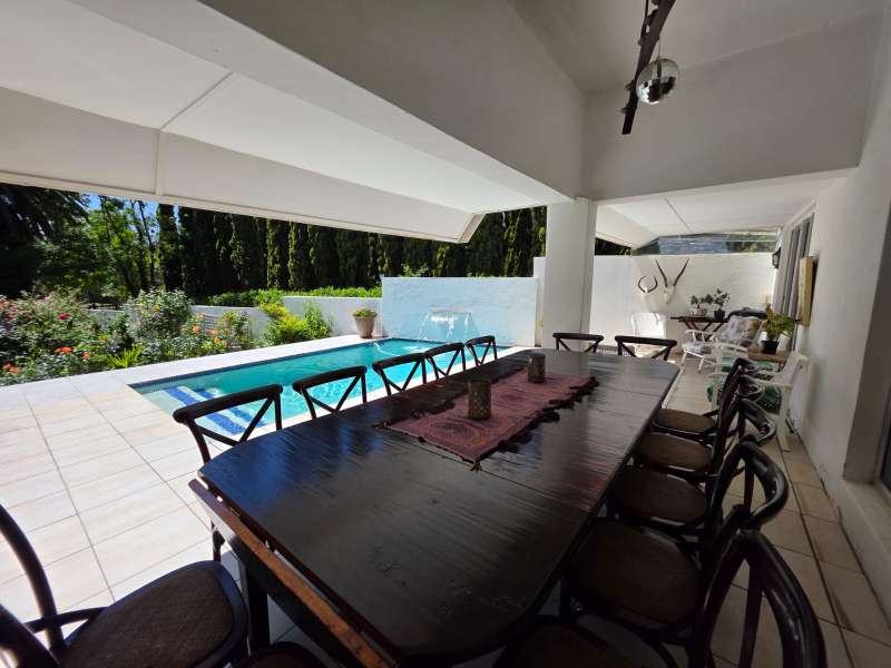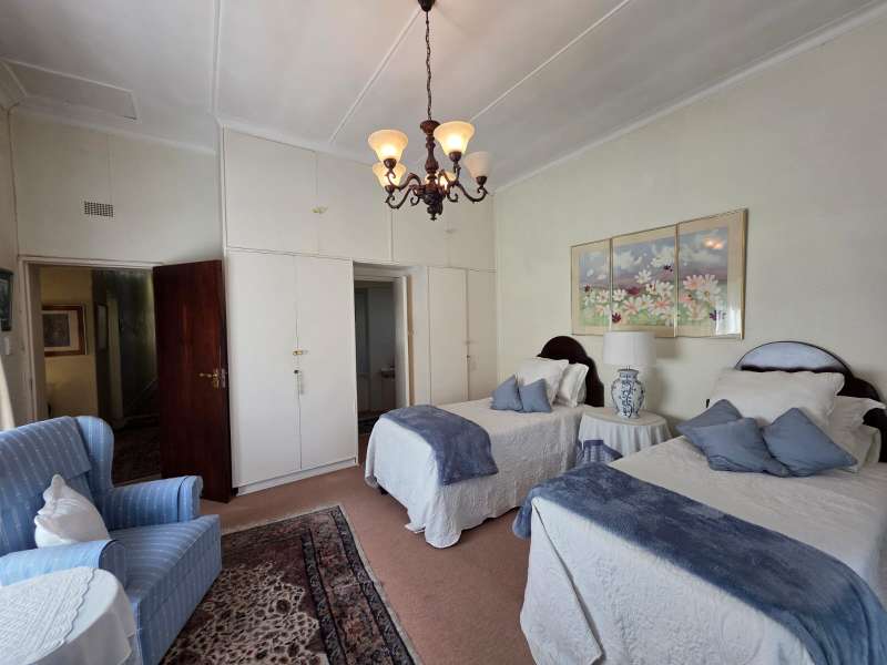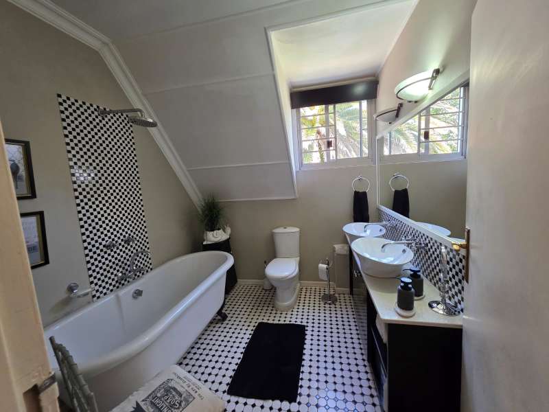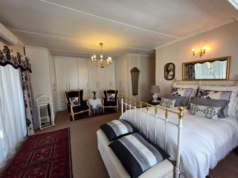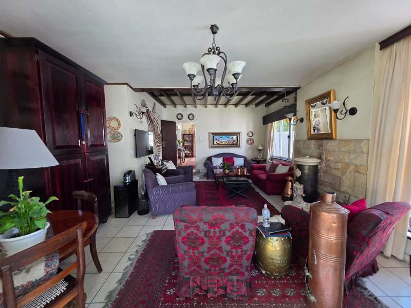 Welcome to this elegant and versatile family home in the sought-after Bayswater area – offering comfort, charm, and ample space for entertaining, work, and relaxation. Downstairs, you are welcomed by a large formal lounge filled with natural light, perfect for gatherings, and a dining room with sliding doors that open onto a covered patio overlooking the swimming pool and beautifully landscaped garden. An informal lounge with an anthracite stove creates a cozy winter haven, with doors leading to the backyard, complete with a built-in braai and vegetable and herb garden. A convenient guest bathroom is also located downstairs. The kitchen is ideally positioned at the heart of the home, with direct flow to the dining, lounge, and entertainment areas. It features a gas stove and plenty of workspace, making it perfect for both everyday family meals and entertaining guests. The guest suite on the ground floor offers privacy and comfort, featuring an en-suite bathroom with a bath/shower combo, basin, and toilet. Upstairs, you’ll find three well-appointed bedrooms. The main bedroom is generously sized with ample cupboards, a private balcony, and a full en-suite bathroom (paw bath with shower head, basin, and toilet). Two additional bedrooms enjoy natural light, built-in cupboards, and share a bathroom with bath/shower combo and basin, plus a separate toilet. A dedicated study with built-in cupboards makes working from home a pleasure. Additional features include a loft room with its own toilet, ideal as a home office, studio, or playroom. The double garage comfortably accommodates two large or three small vehicles. For convenience, the property offers a separate laundry room, domestic quarters with bathroom, and two storerooms. Practical extras include borehole water, pre-paid electricity, and an alarm system for peace of mind. This property is a rare find – blending elegance, space, and functionality, with a landscaped garden designed for family enjoyment and entertaining.