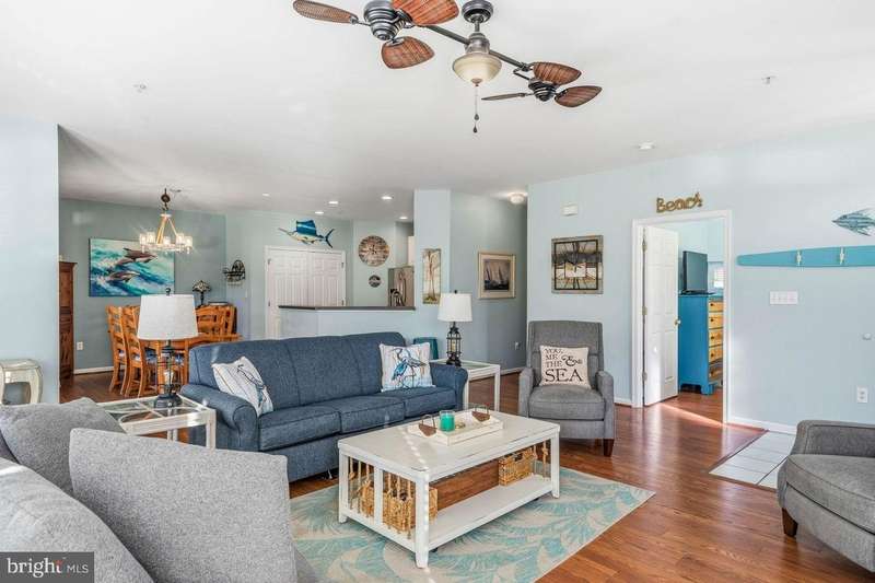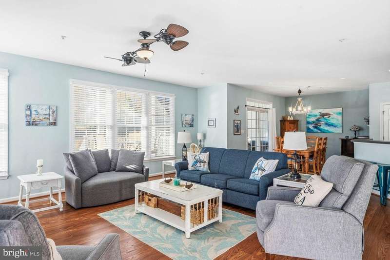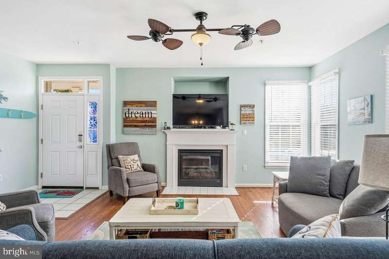Located in the fun-filled Bear Trap Dunes Resort and Golf Community in Ocean View, this spacious first-floor 3-bedroom, 2-bath end-unit golf villa offers a generous blend of comfort and style. The open-concept layout features a bright and spacious family room with light-filled windows, a cozy fireplace, and easy access to a screened porch and private deck overlooking a pond -perfect for relaxing or entertaining. The beautifully updated kitchen showcases newer appliances, plenty of storage and sleek countertops. The kitchen flows seamlessly into the living area, ideal for gatherings or quiet evenings at home. The primary suite is a wonderful retreat with an en suite bath with ceramic-tile bath soaking tub, and double vanity. The suite also includes a walk-in closet and a private balcony. Two additional bedrooms and a stylish guest bath provide ample room for family and guests. Additional highlights include tasteful finishes, and the ease of first-floor living-no stairs! Bear Trap Dunes offers resort-style amenities including a 27-hole championship golf course, indoor and outdoor pools, tennis and pickleball courts, a fitness center, and a seasonal beach shuttle to Bethany Beach. Conveniently located near restaurants, shopping, and entertainment, this property delivers the best of coastal resort living. Don't miss your opportunity to own in one of Ocean View's most desirable communities. This villa offers excellent rental potential, currently averaging approximately $30,000 annually.