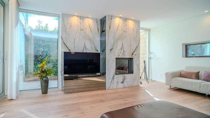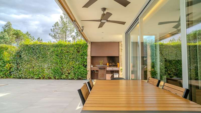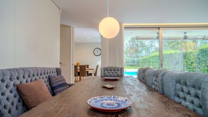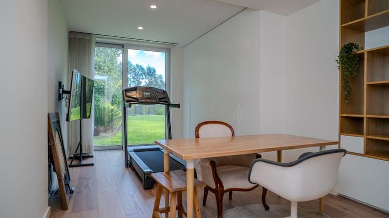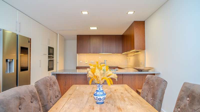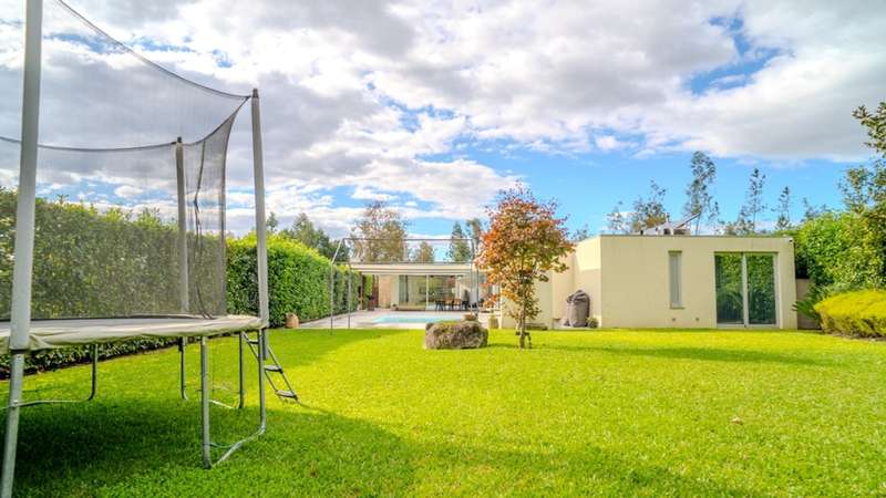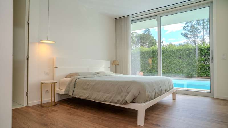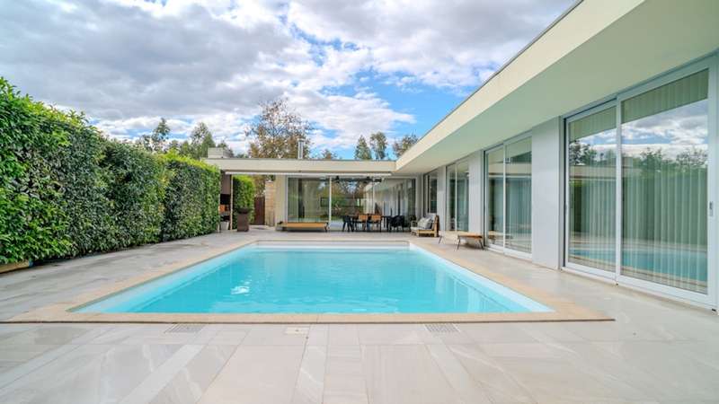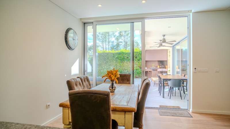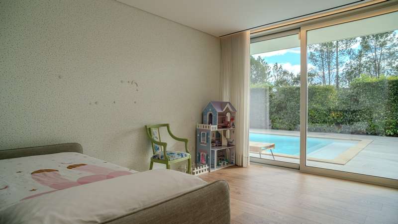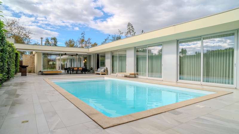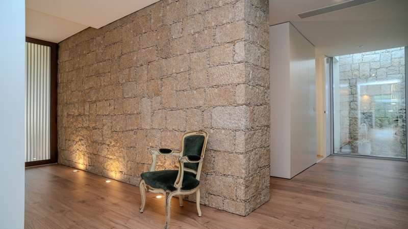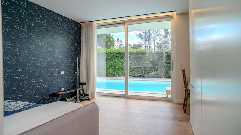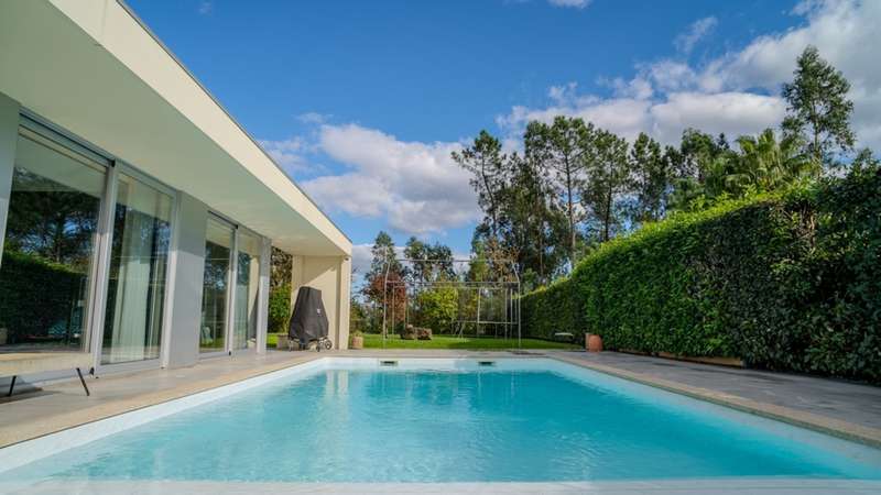 Located on the banks of the Cávado River, this contemporary-style villa is set on a plot of approximately 1000m2, complemented by two other plots bordering the river. It has a simple and intuitive layout, with the social area differentiated from the private area. All rooms have access to the outside, from where you can reach the heated swimming pool, barbecue area and garden area. It has excellent sun exposure, maximized by the glazed windows that run throughout the single-storey villa. it consists of three suites, a guest toilet, an office, a kitchen with a dining area, a lounge and a laundry room, as well as a garage for two cars. It is as good as new and has several technologies that make it easier to enjoy and use on a daily basis, offering protection, comfort and well-being. It is part of a condominium of just five houses which, due to its location, offers almost total privacy. CHARACTERISTICS: Plot Area: 3 117 m2 | 33 551 sq ft Deployment Area: 356 m2 | 3 832 sq ft Building Area: 356 m2 | 3 832 sq ft Bedrooms: 3 Bathrooms: 4 Garage: 2 Energy efficiency: B FEATURES: Air conditioning Fireplace in the living room Video surveillance system Intrusion and smoke alarms Pellet boiler in the bedroom area Automatic irrigation system Central vacuum system Solar panels Photovoltaic panels