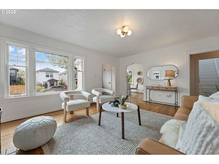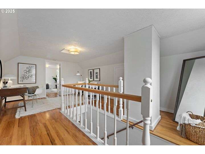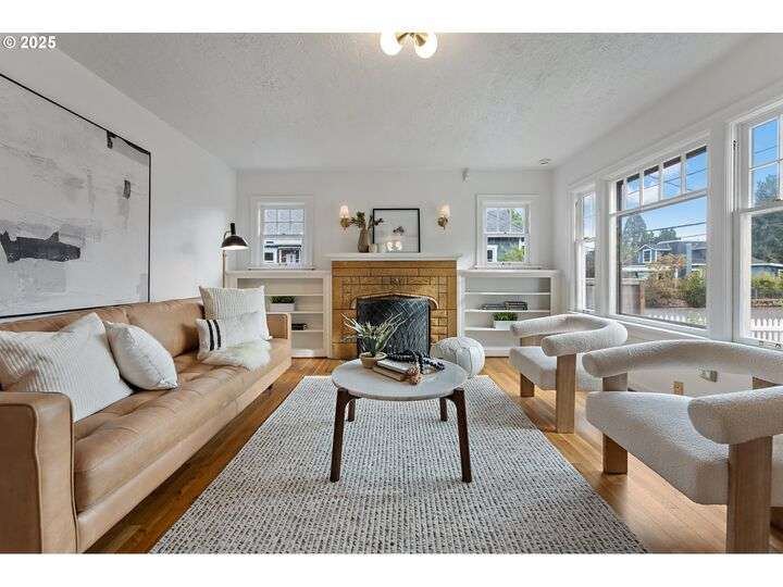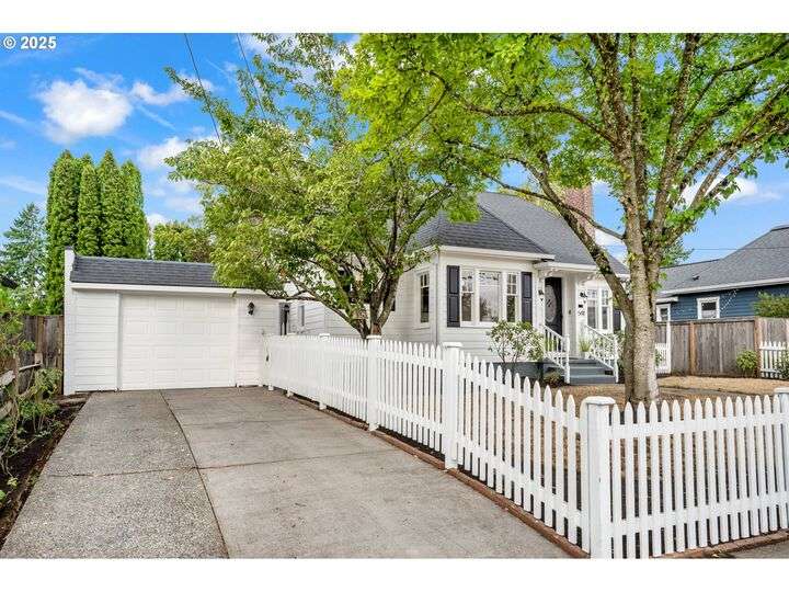 Welcome to this stunning storybook English-style abode tucked neatly between Woodstock & Mt Scott park's and just a stone's throw from convenient markets, eateries, cafes and food-carts of Woodstock & Foster. This home might be the perfect marriage between 30's era charm (original refinished hardwood floors, fireplace, ample bedrooms, graceful arches & vintage bathroom) and modern system updates including Hardiplank siding, roof, exterior & interior paint, light fixtures, idyllic picket fence & restored wood windows, hi-eff furnace, water heater & more! Inside, ample windows provide plenty of southeastern light - illuminating classic built-ins, formal dining room, charming kitchen & ample living room with fireplace. Have a sip of Oregon Pinot on the covered back patio while the gentle lapping of the water feature soothes you (rain or shine). The wooded fairytale yard provides a garden path, water feature, and shaded canopy amid a private sanctuary. For rest, two copiously sized main level bedrooms boast original (refinished) hardwood floors. Upstairs, the bonus loft area is ideal for a home office or workout space - and features plenty of storage. The primary bedroom offers hardwood floors as well and is nicely tucked away from life's hustle-bustle. Bring your vision to the lower level. Not only does it offer high ceilings and side entrance from the breezeway (future ADU anyone?) - it has ample space for a family room, workshop and more. Don't miss the detached, over-sized garage perfect for restoring a car or storing all of your gear. All of this just minutes to downtown PDX, airport, Clackamas Town Center & more! Walk Score of 78! Bike Score of 99! What are you waiting for? [Home Energy Score = 2. HES Report at https://rpt.greenbuildingregistry.com/hes/OR10241776]
