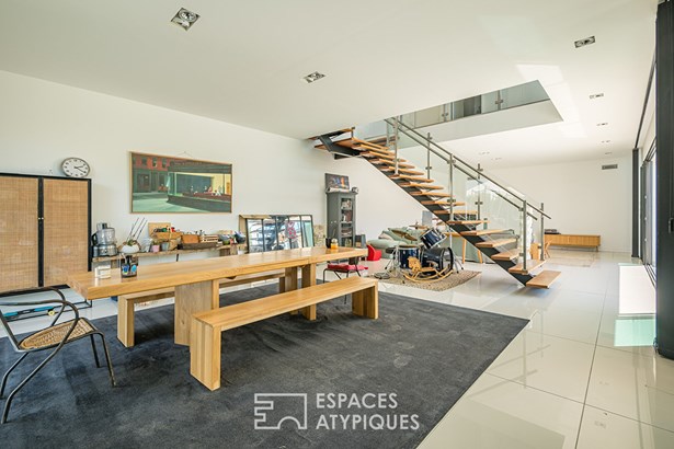 Less than a 10-minute walk from the center of Pessac and its train station, discover this superb 252 sqm contemporary house, designed by a renowned architect, combining elegance, modern comfort, and high-end amenities. From the entrance, natural light and generous volumes set the tone.