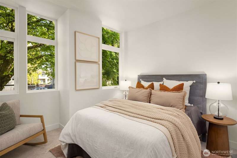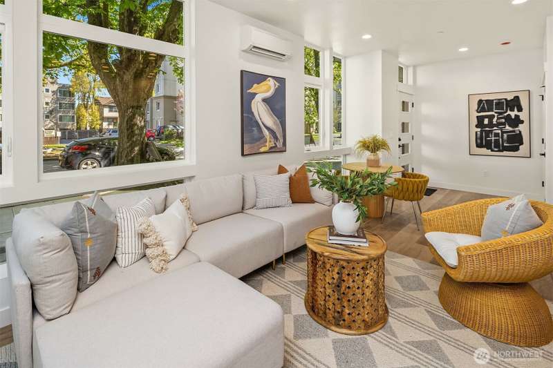 BUILDER-PAID 4.99% 30-YR FIXED FINANCING AVAILABLE FOR LIMITED TIME. Discover 24 on Howell, a premier collection of 24 modern townhomes nestled in the heart of Seattle’s vibrant Capitol Hill. This home offers a functional floor plan, with option for roommates or WFH. Main level open concept living room and kitchen provides light-filled entertaining space. Second level hosts two spacious bedrooms and full bath. Penthouse primary suite for ultimate privacy. Each home features a spacious rooftop deck, perfect for enjoying panoramic city views, while select units also boast private yards. Assigned EV-ready off-street parking. Near to Trader Joe's, Central Co-op, extensive eateries and nightlife!