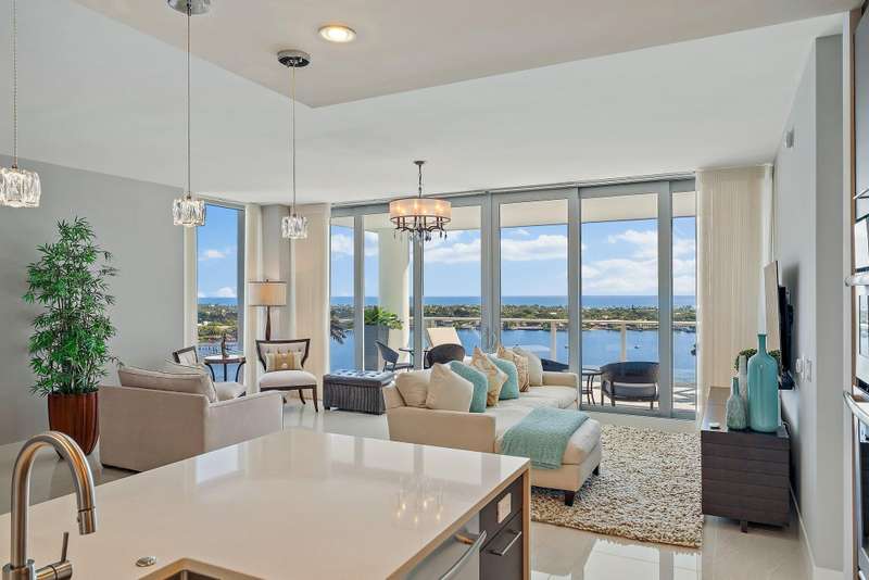 Enjoy amazing views to the ocean, Lake Worth Lagoon, and as far as they eye can see from this ultra luxury ''Azure'' floor plan in Water Club. The Azure model is the largest floor plan of the four regular stacks in the first two towers of the community. This unit also has a den/office that could serve as bedroom # 4 because it has a full bath and sleeper sofa. Best of all, Water Club has world class amenities like 24/7 manned and gated security, private elevator lobbies, covered parking, a private clubhouse, resort style pool, lap pool, fitness center with yoga/pilates studio, spa, fire pits, pickle ball court, guest suites, and more..