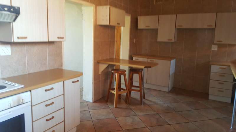 Kitchen fitted with loads of Cupboards and a breakfasr counter