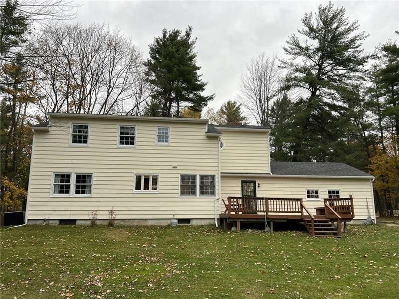 Welcome to this classic 4-bedroom, 2.5-bath Colonial nestled in the desirable Pinewood Acres neighborhood on Spencer Hill. Tucked away on a beautiful wooded lot, this home offers both privacy and timeless charm. Inside, you'll find gleaming hardwood floors, high ceilings, and light-filled rooms throughout. The spacious living room features a woodburning fireplace, while the formal dining room is bright and inviting?perfect for gatherings. The eat-in kitchen provides plenty of space for everyday meals, and the first-floor laundry adds convenience.A first-floor office, which could easily double as a den or study, offers flexibility for today's lifestyle. Upstairs are four comfortable bedrooms and two full baths, including a generous primary suite. The finished lower-level rec room provides additional space for work or play.Enjoy the large, private backyard from the deck, ideal for relaxing or entertaining. Recent updates include an epoxy garage floor, central air, generator, water heater, sump pump and new gutters and soffits?all adding comfort and peace of mind. A truly classic home in a picturesque setting?ready to make your own!