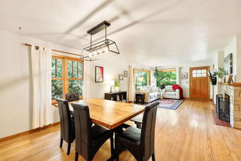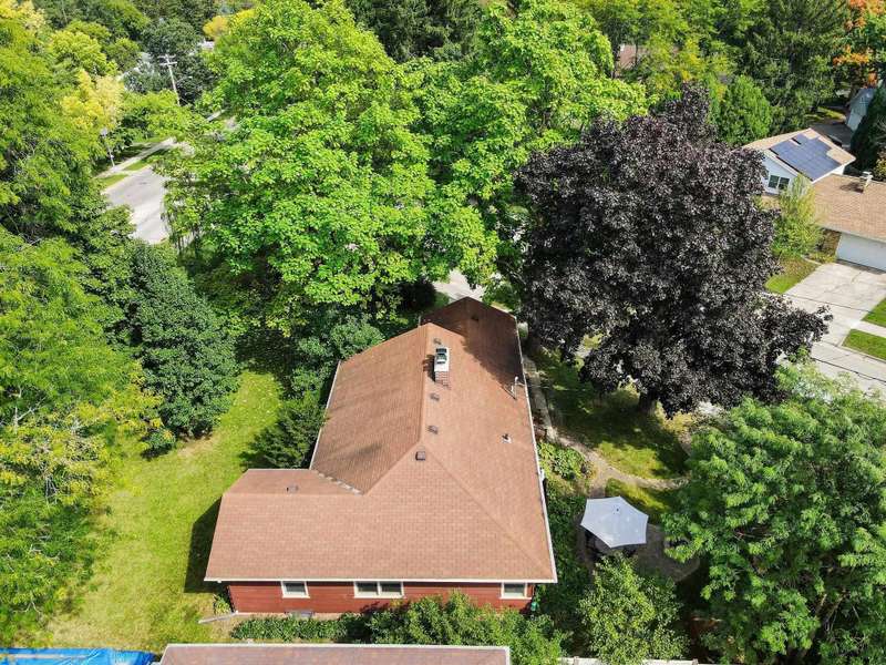 Mid century modern inspired design with huge windows overlooking beautiful perennial garden yard. Sellers finished lower level (2018 with permits), Bathroom renovation (2017), garage storage added (2019), radon mitigation (2020), Prof paved patio w/ fire pit (2021), Prof gutter covers (2024), water heater (2024), Ducts prof cleaned (2025), roof (2001), Furnace (2008), Kitchen remodel (2006), Andersen windows (2011-2014), Marvin windows (kitchen 2011-2014), hard wood flooring, wood burning fireplace, flower paradise w/ dozens of species of trees and flowers! Seller says, "every week is a new story in the yard" about the various gardens. Over a dozen Peony bushes! Close to schools, Nakoma Country Club and Arboretum! Entrance on Whenona. 13 Mins to Epic!