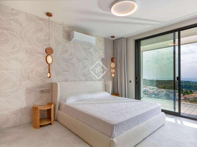 Modern elegance with endless sea views in Lloret de Mar Nestled in the prestigious Normax development , this spectacular newly built property represents the perfect fusion of contemporary design, energy efficiency, and a prime location with uninterrupted panoramic views of the Mediterranean Sea. With a constructed area of approximately 250 m² on a 502 m² plot , the property offers a functional layout and high-end finishes that guarantee comfort, style, and privacy in an exceptional natural setting. The property has direct access from the street to the garage, located on the same level. On the ground floor, there is a spacious and bright dining room living room with an open-plan Italian-style kitchen, a double bedroom , a full bathroom with a shower, a utility room, a storage room, and direct access to the garden and private pool. On the upper floor , there are three double bedrooms, one of which is en suite with a full bathroom including a bathtub and shower. The other two bedrooms share a second full bathroom . This floor also offers direct access to the garden, taking advantage of the natural slope of the land. Its features include stunning open sea views from almost every room, a private pool, a low-maintenance garden , solar panels, pre-installed aerothermics , and underfloor heating with a Bosch boiler and individual room controls. The property features air conditioning with independent Samsung split units , mechanical ventilation with continuous air renewal, and an Ajax alarm system connected to the police station and pre-installed for video surveillance. Connectivity is guaranteed thanks to fiber optics, and LED lighting is combined with decorative bronze Serip luminaires that add a touch of elegance. The kitchen, by the Italian brand Gentili Cucine, is equipped with water-repellent MDF cabinetry, natural oak and matte lacquer finishes, a Laminam porcelain stoneware countertop, and state-of-the-art Bosch integrated appliances . A unique property that combines privacy, technology, design, and an incomparable natural setting. Ideal as a permanent residence or second property by the sea, ready to move in and enjoy from day one.
