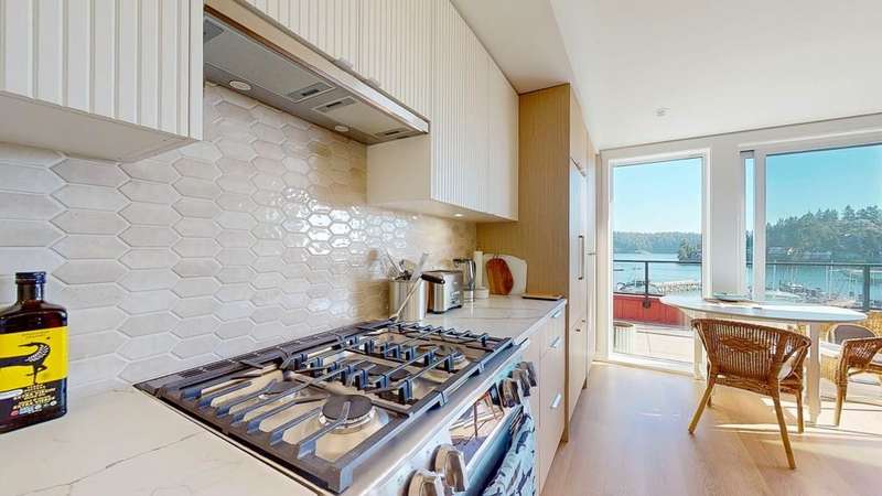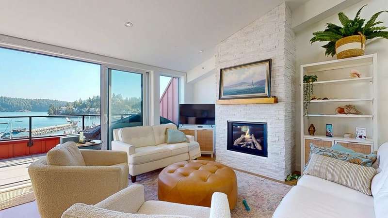 Experience vibrant, walkable urban living in the heart of Gibsons - a charming community where coastal calm meets convenience. This nearly new townhome offers panoramic harbour views stretching across Shoal Channel to Keats Island. Stroll to local cafes, shops, the marina, and earby parks, all just steps from your door. Inside, enjoy a bright, airy interior with vaulted ceilings, a skylight, and floor-to-ceiling windows that frame the stunning views. The sunny southern exposure and spacious patio are perfect for outdoor living and entertaining, while a cozy fireplace invites relaxation. A private elevator provides effortless access to every level, including a large over-height garage with generous storage. Call your Realtor to view.