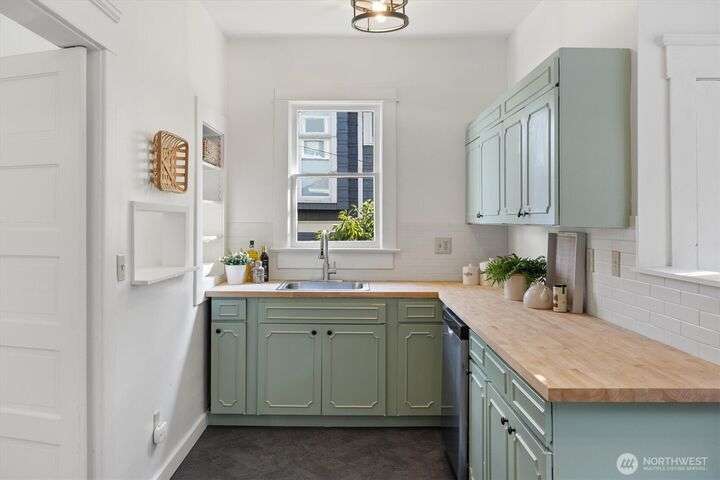 Charming 3 bedroom 2 bath Wallingford home! Spacious kitchen with new butcher block countertops, subway tile backsplash & designer flooring. This space is designed not just for cooking but for creating memories! Thoughtfully laid-out floor plan includes 3 bedrooms on the top floor, a highly sought-after configuration that adds to the home’s allure. The partially finished basement presents a canvas awaiting your vision, offering future expansion potential that can be tailored to your lifestyle needs. Whether you envision a home office, a rec-room, or additional living space, the possibilities are endless. Coveted Wallingford neighborhood impressive 87 walk score & 89 bike score, placing you only minutes away from UW, Amazon, downtown & 520.