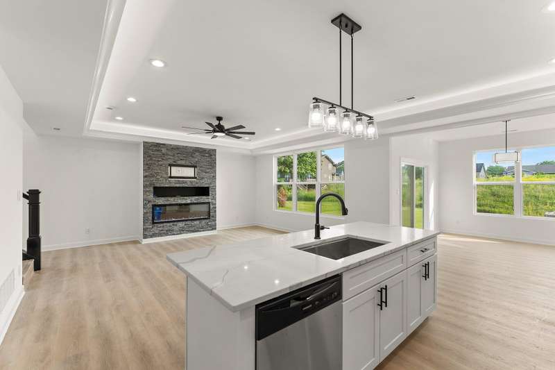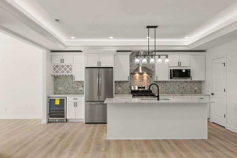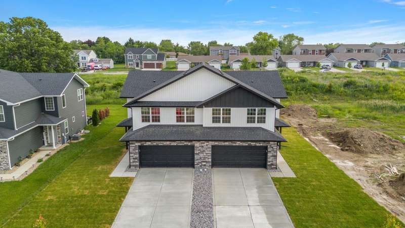 Currently under construction, January 2026 completion! Take a look a this luxurious town home located in the up and coming Fox Moor Subdivision in Merrillville. This two story townhome offers 3 bedrooms, 2.5 baths, a 2 car garage and 2,055 sq ft of living space! The open concept floor plan on the main floor features a spacious living room with fireplace, tray ceilings, a formal dining room with a sliding glass door that lead out onto a patio. The high quality vinyl plank flooring throughout. The kitchen offers gorgeous 42 inch soft closing kitchen cabinets and drawers, a large kitchen island with quartz counter and overhang, ss appliances, wine refrigerator, a walk-in pantry, and a 1/2 bath. The second story features a spacious master bedroom with fireplace, a massive walk-in closet with custom closets and bathroom suite with counter height wood cabinets, under-mount sinks and quartz counter top.