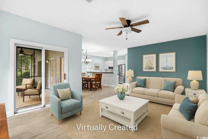 Experience Lowcountry living in this spacious 3-bedroom, 3-bath two-story condo located in the gated community of Pawleys Plantation. With two primary suites, one on each floor, this move-in-ready home offers flexibility for guests, a private owner’s retreat, or multi-generational living. Step inside to find fresh paint, new LVP flooring & fresh carpet, creating a bright, welcoming feel. The open-concept kitchen flows seamlessly into the dining & living areas, making it easy to entertain or simply enjoy time at home. Upstairs, a large sitting area complete with a kitchenette for morning coffee or evening snacks joins the second-floor primary suite, while the third bedroom with ensuite bath provides additional privacy and comfort. Relax year-round on your private screened-in-porch, featuring vinyl sliders to keep the weather out while you take in serene, tree-lined views. Additional highlights include a covered carport with storage and a location just a short distance from the Pawleys Plantation clubhouse, grill and golf facilities (membership optional). Just minutes from Pawleys Island beaches, dining, and shopping, this property is ideal as a full-time home, vacation retreat, or investment. All measurements & HOA information to be verified by Buyers Agent/Buyer. Some images are virtually staged.