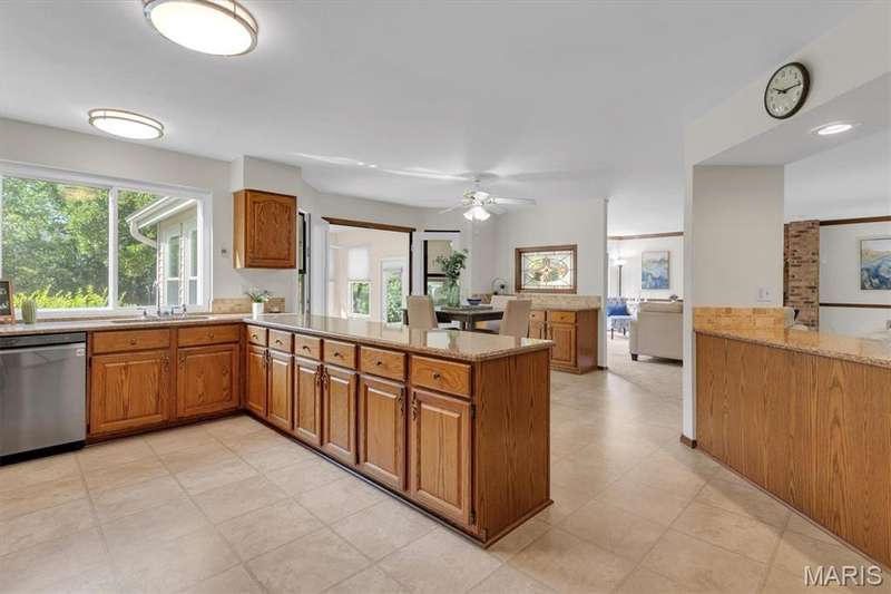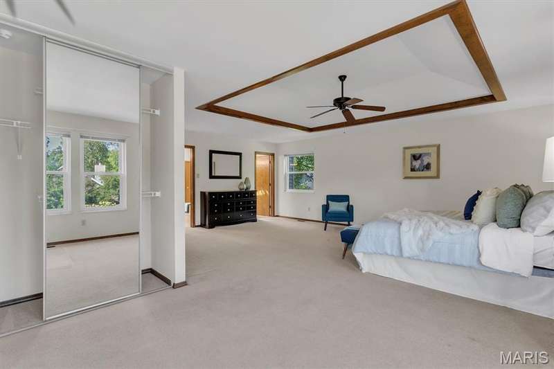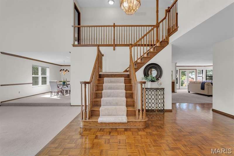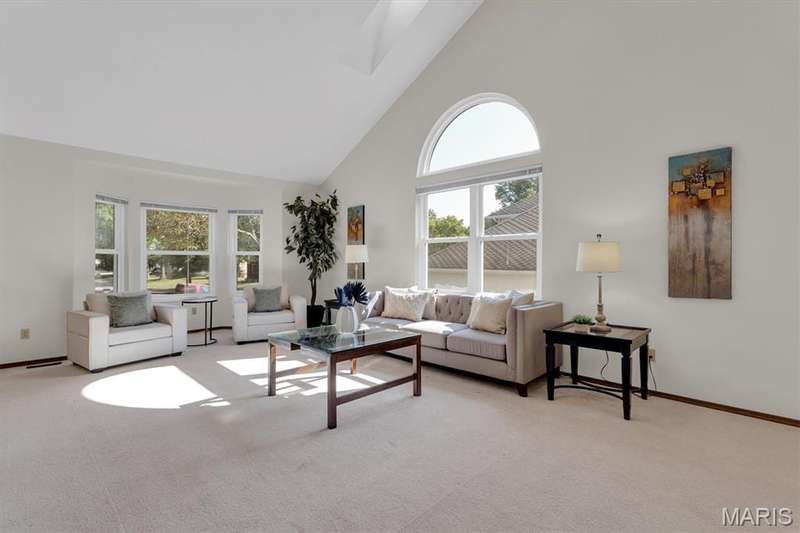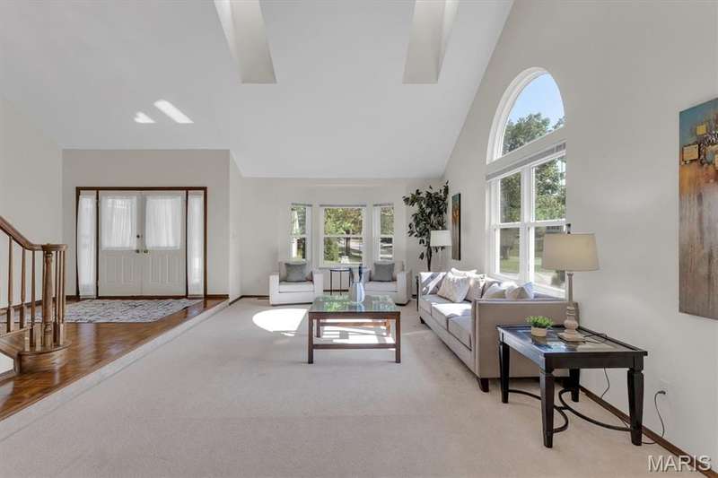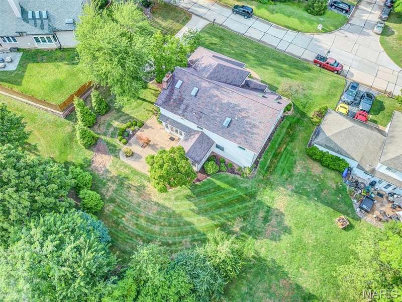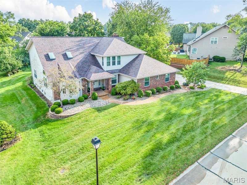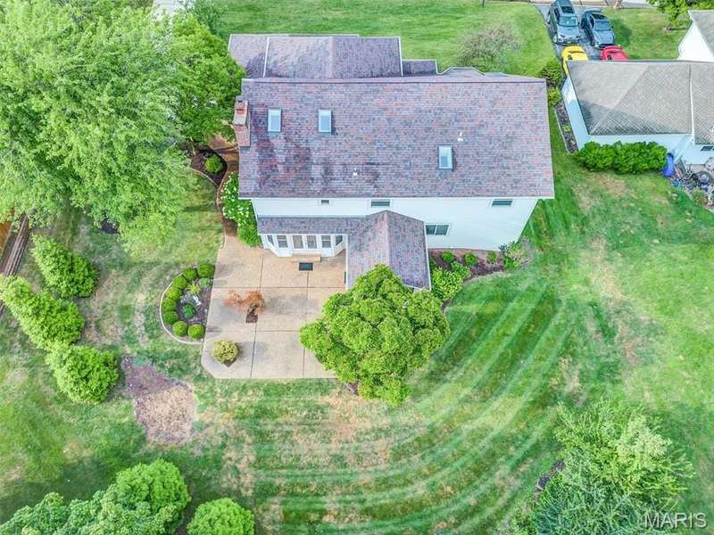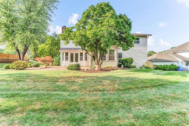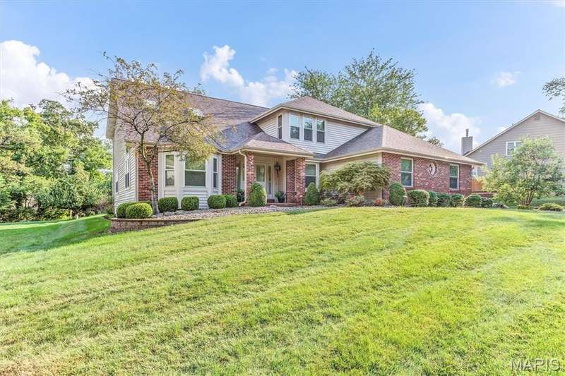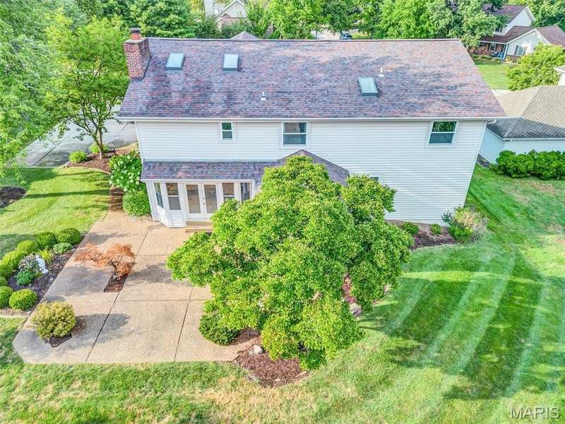 This is the most STUNNING two story! Over 3500 sq feet on a .35 acre yard. Backs to trees. Lush Green Lawn. Irrigated. Professionally Landscaped. All to be viewed from the rooms full of windows and Rear SUNROOM/Four Seasons Room. The minute you open the door, you are greeted with a GRAND Staircase and balcony. Many a family photos taken here. Two story entry, sunken front Living Room with Cathedral ceiling and Pallidium window. Incredible Large Formal Dining room with Chandelier. Kitchen has raised panel cabinets, plenty of counter space with quartz tops, picture window between the breakfast room and Greatroom. Greatroom has floor to ceiling brick fireplace and double doors to aggregate patio. Main floor laundry. Upper level has Primary Suite with Luxury updated master bath. Coffered Ceiling. Stain Trim. Six panel doors, Loft with storage, very large secondary bedrooms, jack and jill bath. Master Bath has skylights, double sinks, marble tops, cathedral ceiling, remodeled shower, double closets, and GRAND Soaking Tub. Lower Level finished with 3 rooms with multiple uses of sleeping areas, music rooms, art rooms, office, and/or so much more! Roof 2021, HVAC-Dual System-High Efficiency-Lennox in 2021. Windows 2010, Gutters & Siding 2012, Quartz Countertops 2020, Master Bath Remodel 2022, LG Refrigerator 2021, Leafguard 2024. This is not your typical 2 story. Definitely a NOTCH above the rest!