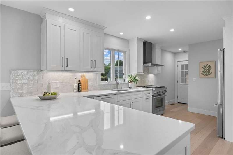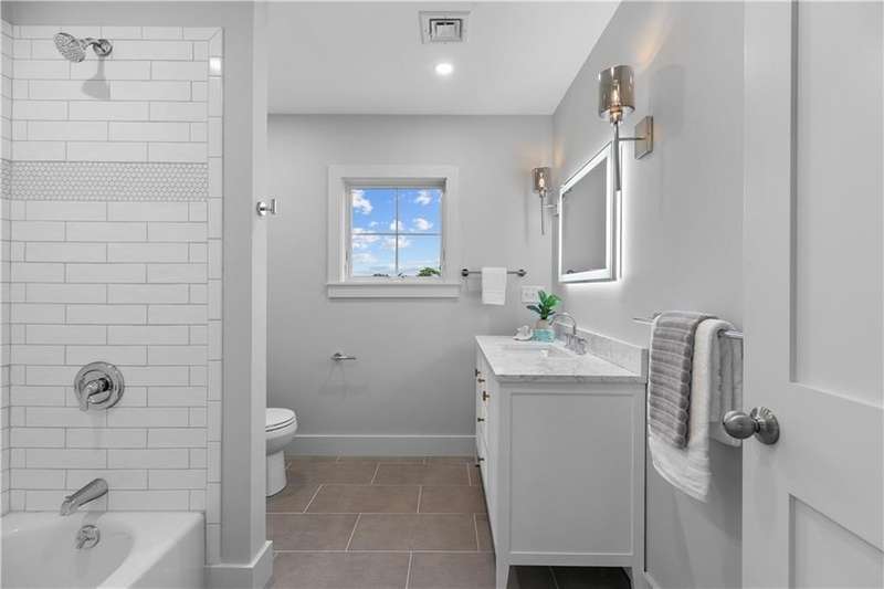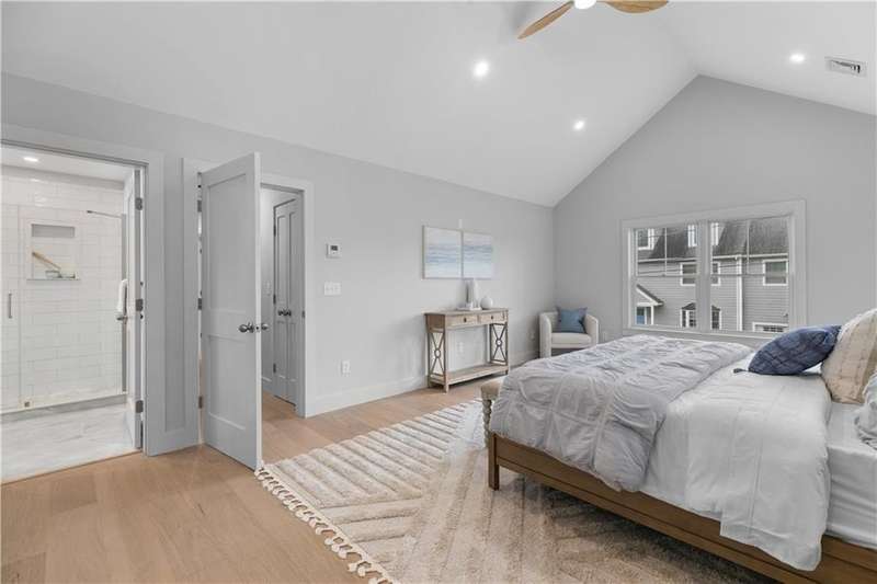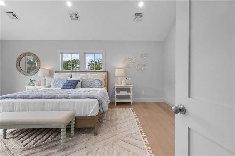 This completely reimagined coastal home has been taken down to the studs and rebuilt with luxury and comfort in mind. A brand-new second floor expands the living space, creating a modern retreat just minutes from the shoreline. Inside, enjoy gleaming hardwood floors throughout, a state-of-the-art heating and cooling system, and top-tier Thermador appliances with quartz countertops. Step outside to a quaint front porch, perfect for morning coffee, or retreat to your private backyard deck for quiet evenings. The newly paved driveway, fenced yard, and attached one-car garage add convenience and security. Every detail is brand new—just bring your flip flops and start enjoying the beach lifestyle.