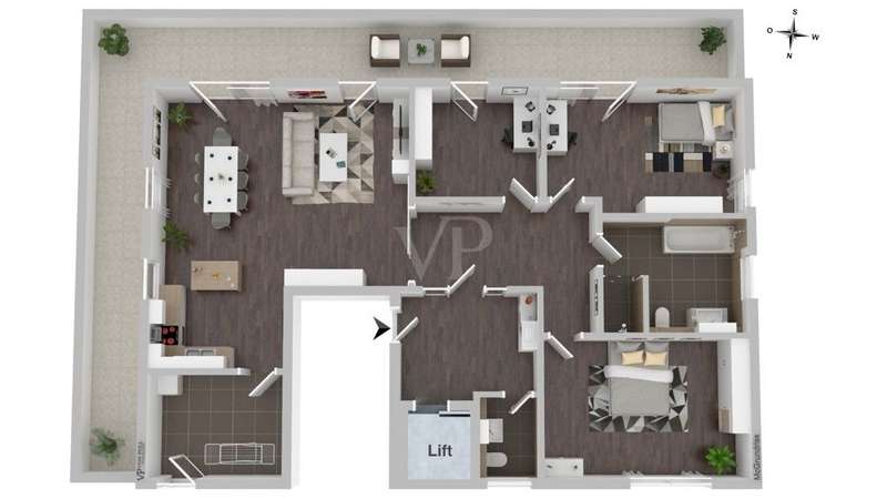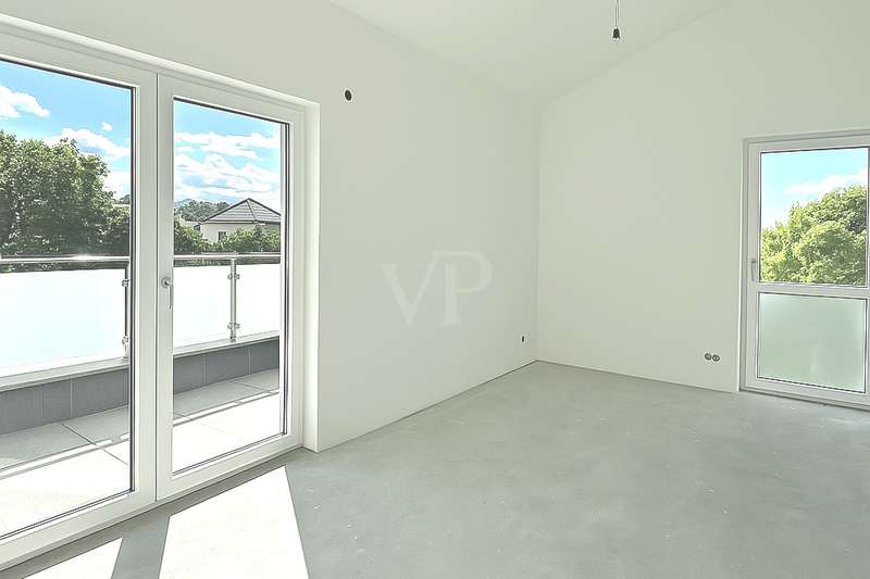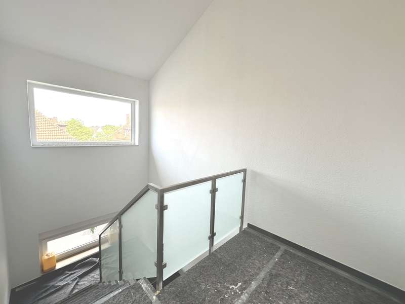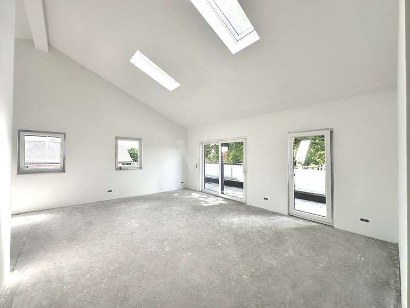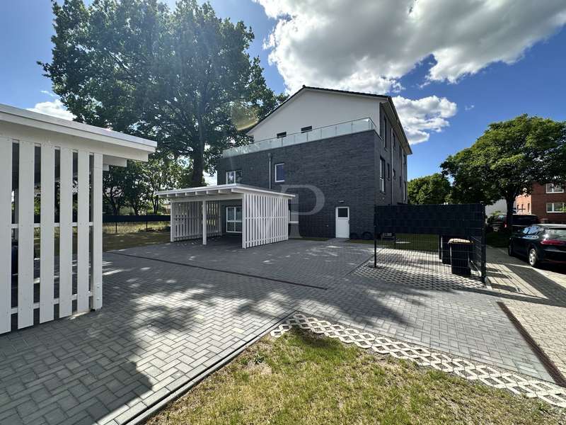 For sale is a sophisticated penthouse with high quality equipment in a barrier-free residential complex. The penthouse was only built in 2022 and is therefore the first occupancy. The living space is about 153 m² and offers enough space for a family. The penthouse has four rooms, including three bedrooms and a spacious living area. A carport is also available and offers a secure parking space. Particularly noteworthy are the barrier-free construction and the implementation of energy-saving measures according to KFW55. The building thus meets very high standards of energy efficiency and the current thermal insulation standard. The low energy demand ensures low heating costs and is therefore also ecologically sustainable. The furnishings and fittings have not been skimped on either. A sophisticated and modern bathroom, high-quality flooring and an open kitchen with modern built-in kitchen appliances offer the highest living comfort. A highlight of the penthouse is the spacious balcony with a view of the greenery. Due to the proximity to the city and yet a quiet location, it is ideal to live here. A good infrastructure in the immediate vicinity offers shopping facilities, schools and kindergartens. Overall, the property promises an upscale and modern living ambience as well as an energy-saving construction. The penthouse is therefore ideally suited for families and people who place a high value on modern living quality and an ecologically sustainable way of life.