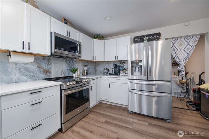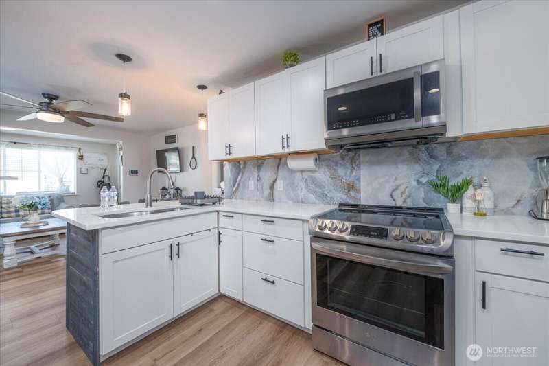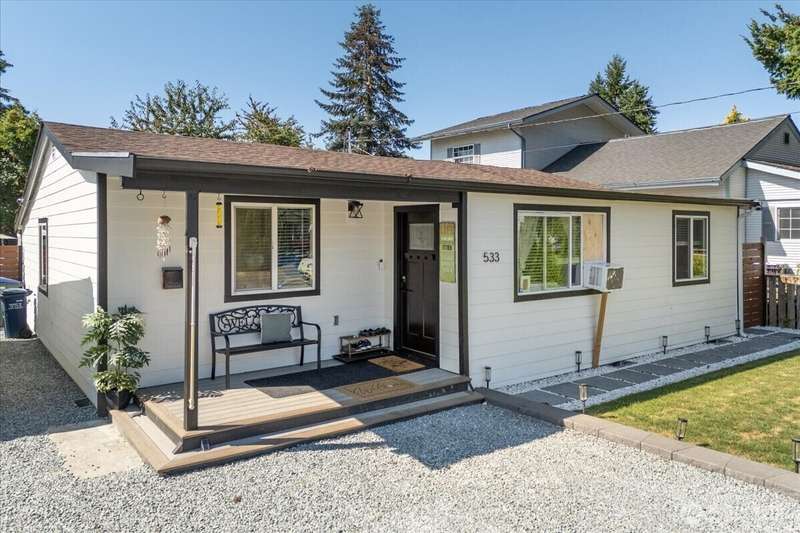 In the heart of Sedro-Woolley, sits this thoughtfully updated rambler. Offering a comfortable living space, large living room, kitchen with granite countertops, new backsplash, new fridge, walk-in pantry with ample shelving, luxury vinyl plank flooring & good-sized utility/mudroom. Primary bedroom features vaulted ceilings, walk-in closet & updated 3/4 bath with tiled-wall shower accent. Plus, 2 additional guest bedrooms & full guest bath. The beautifully manicured & landscaped outdoor space offers new exterior paint, a large fully fenced backyard, above-ground pool, new patio space, storage shed, small deck & covered front porch. Conveniently located within walking distance to downtown, schools, Riverfront Park & other local amenities.
