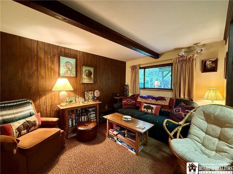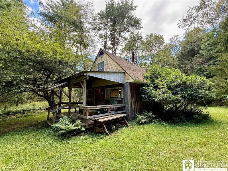 Tucked away on nearly 2 acres, this rustic camp offers the perfect retreat for nature lovers. The cozy cabin comes fully furnished and features warm wood accents, exposed beams, and a wood stove that welcomes you to settle in after a day outdoors. The inviting living area has the charm of a true getaway, with plenty of space to relax, play games, or enjoy quiet evenings by the fire. A covered porch is the perfect spot to sip your morning coffee while listening to the creek and taking in the peaceful surroundings.The land offers a mix of open and wooded areas, highlighted by a private pond for fishing or simply relaxing by the water. Accessed by a right-of-way driveway, this property is suitable for use as a seasonal retreat or weekend getaway. OGM and Timber rights do not transfer.SHOWINGS WILL BEGIN 9/26 & NEGOTIATIONS WILL BEGIN 9/29