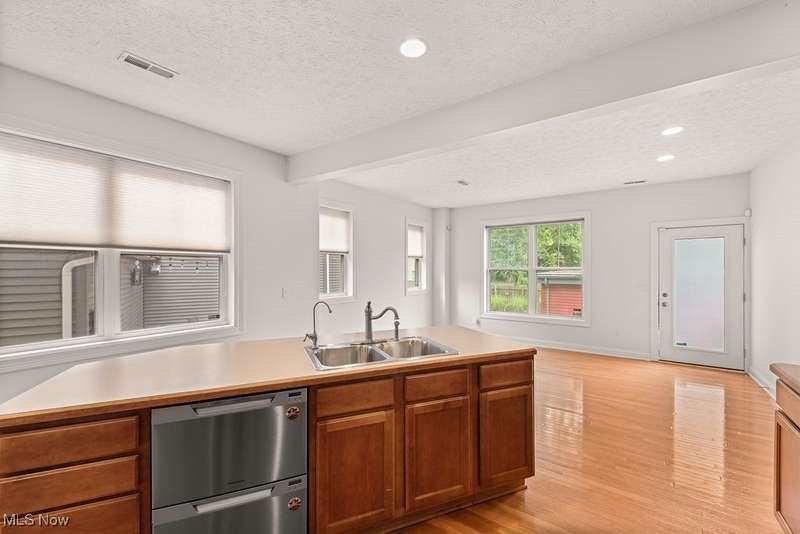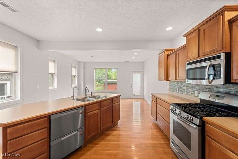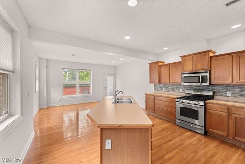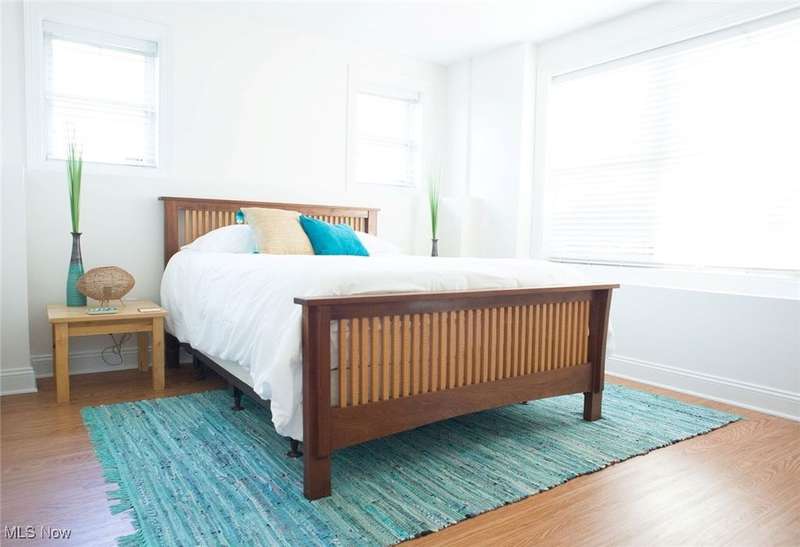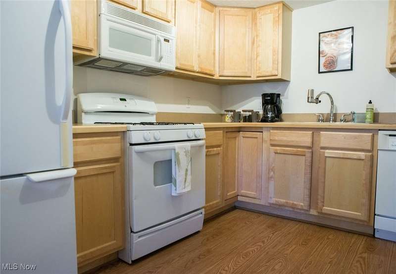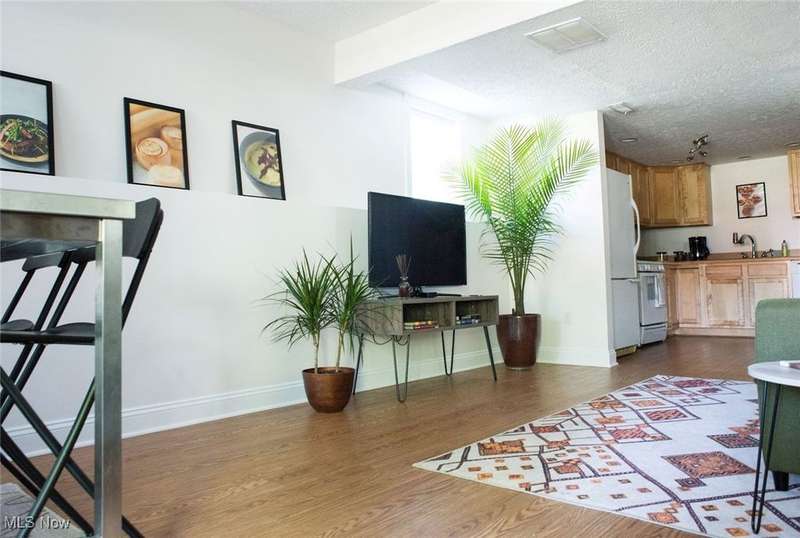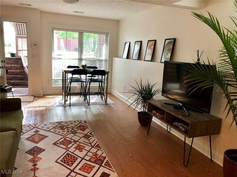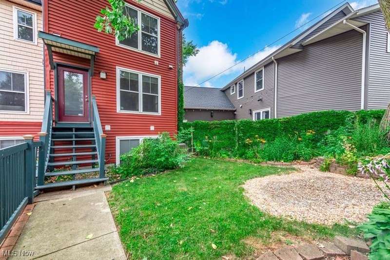 INCOME PRODUCING! Welcome to this desirable corner townhome in the EcoVillage enclave of Detroit Shoreway, complete with a rentable garden apartment! A graceful, wide front staircase and porch welcome you into the home's entryway. Inside, the main floor features hardwood floors that flow seamlessly from the dining room to the open-concept kitchen and living room. Expansive windows bring in abundant morning and afternoon light. The kitchen with its rich wood cabinetry, stainless steel appliances, and a central island ideal for entertaining and everyday living. Just off the kitchen, you'll find a half bath, a walk-in pantry, and generous under-stair storage area. Upstairs, the oversized primary bedroom features a walk-in closet and en-suite bath. The second bedroom offers newly added bamboo flooring and a mirrored wall perfect for gym or yoga. A full bath and laundry station round out the 2nd floor. The garden apartment (650 sq ft) with its own entry, adds unique value and versatility. Open living/dining space, fully equipped kitchen (stove,refridgerator, dishwasher & microwave), full bath and in-suite laundry. Its pretty special! The backyard is one of the largest in the devlopment. Fully fenced & thoughtfully landscaped. A paved path leads to the 2 car detached garage. The location of the home is within walking distance to neighborhood cafes, restaurants, wine bars, art galleries, and the W 65th-Lorain RTA rail and bus lines. Steps to Gordon Square, Edgewater Park and Downtown Cleveland.