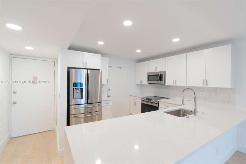 Beautifully renovated ground level 2 bedroom/2 bath condo, where comfort and elegance harmonize in perfect balance. The spacious living area boasts abundant natural light cascading through large windows, creating and ambiance of warmth and tranquility. Completely renovated with new vinyl floors, new kitchen cabinets, new kitchen countertops, new bathroom cabinets, tub and toilets, stainless steel appliances and many more upgrades. This exclusive 55+ community offers many activities including heated pool, clubhouse, billiards, fitness room, shuffleboard, bowling alley, and local bus service. Building has new roof 2023.