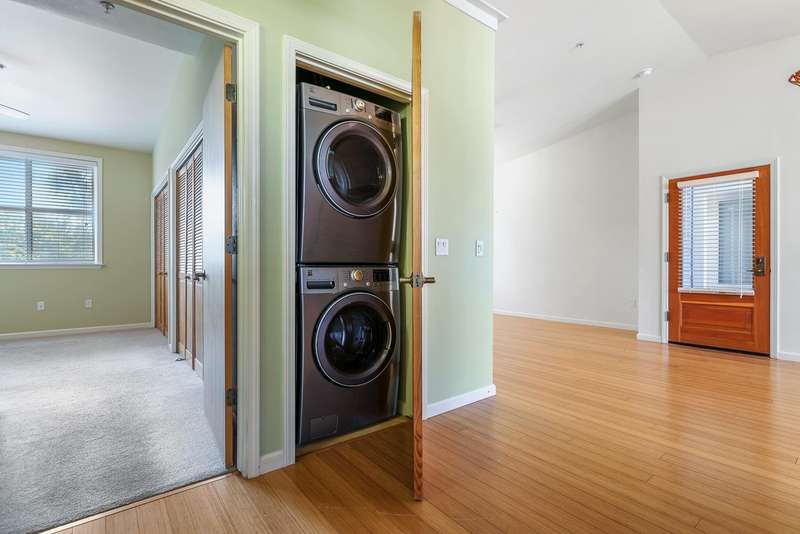 Fantastic 2 Bedroom 2 Bath Condo nestled in the La Querencia Co-Housing Complex of only 28 units. Desirable location w/Clovis North Schools. Unit includes a One Car Garage. Energy efficient w/owned Solar, Tankless Water Heater & dual pane windows. Upscale design with high ceiling throughout and lots of natural light. Striking Bamboo flooring in Living, Dining, Kitchen and Hallway. Living, Dining Room and Kitchen have vaulted ceiling. Inviting balcony patio off of Kitchen area. Vaulted ceilings in Both Bedrooms with full wall closets. Ceiling Fan Light Fixtures in every room. Kitchen has a Gas Range plus a Pantry. Both Bathroom have a Solar Tube Skylight offering additional natural lighting. Stack Washer and Dryer are included. This is a very unique Community and go to www.fresnocohousing.org to learn more about the complex. Low turnover complex and units do not come on the market often. The complex features a Common House w/a Commercial Kitchen and indoor/outdoor dining area. Common House also has a Sitting/Library area w/fireplace, Indoor Playroom, Commercial Laundry Room and a Guest Bedroom/Bath for visiting Overnight Guest to rent by the day. Additional amenities include a Hugh Pool, Spa, Adult Gym, Game Room, Craft Room and Wood Workshop w/extensive tools. Grass and Sand Box Play areas, Community Garden w/Fruit/Citrus trees. HOA fee includes sewer/water/garbage, internet, master fire insurance policy, building maintenance & more. Tremendous Value and Location.