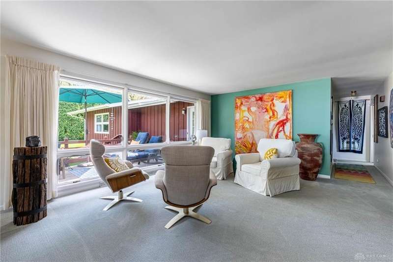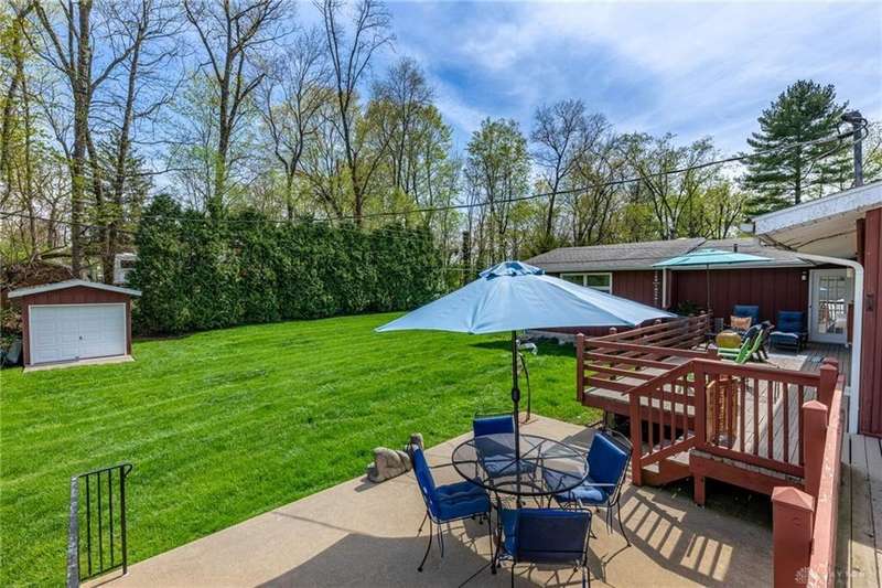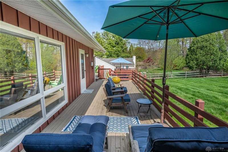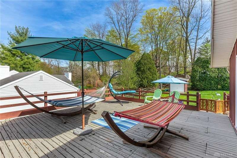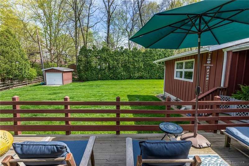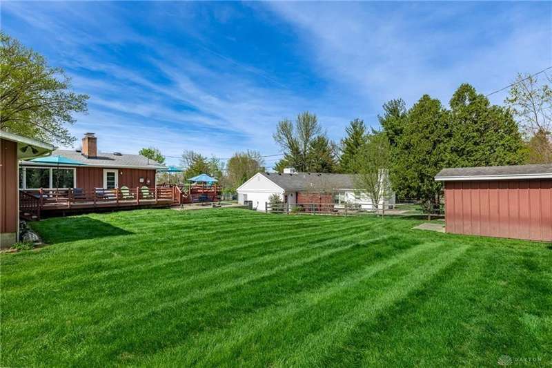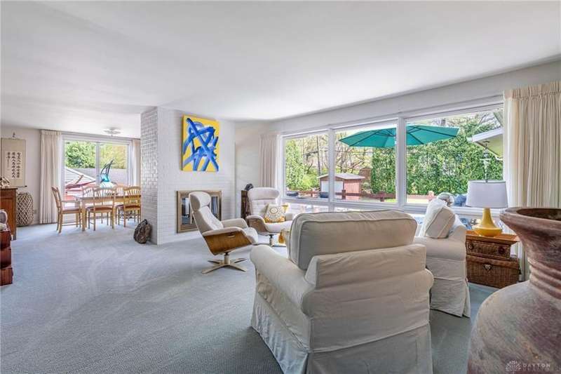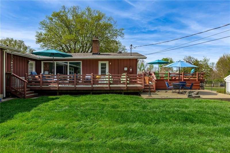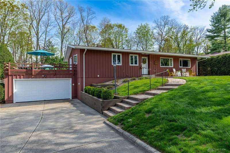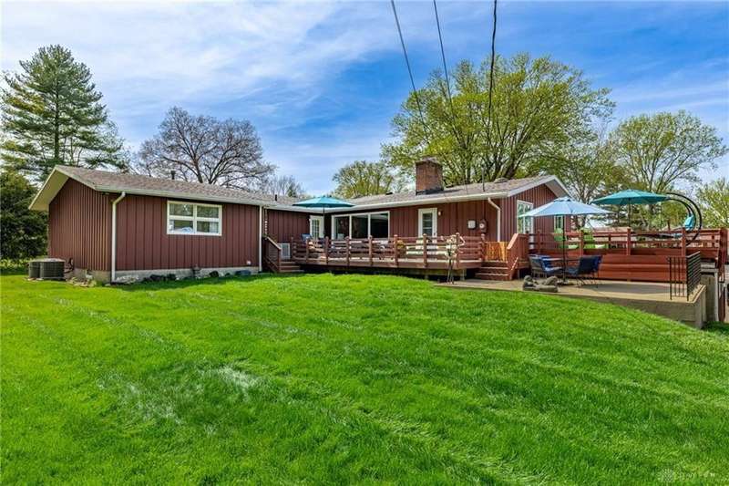 GORGEOUS Mid-Century Modern with pride of Ownership Inside & Out, located in one of Xenia's most sought, beautiful neighborhoods! Discover 2,261 sq. ft. of beautifully maintained main-level living, paired with a full basement offering an additional 2,000 sq. ft. of versatile space. From the moment you step onto the wide, relaxing front porch and into the inviting foyer, this home welcomes you with warmth and light. A stunning wall of windows fills the formal living and dining rooms with sunshine, while a dual-sided white brick fireplace adds charm and elegance—perfect for gatherings. Host with ease in the expansive living areas or step outside to the AMAZING, elevated SUN-MOON deck, where you’ll enjoy views of the lush, landscaped backyard. A perimeter deck and grilling patio add to the outdoor living space! The kitchen features a bar top, sunny breakfast nook, and pantry closet. The dedicated Family Room / Den off the foyer adds function and flexibility. Offering 4 spacious bedrooms and 3 full baths, including a primary suite with ensuite bath and generous closet space, this home blends comfort with convenience. Additional bedrooms share access to 2 hall baths - one with jetted tub and a third full bath with walk-in shower. Via front and rear staircases, the semi-finished, garage walkout basement provides endless potential—ideal for recreation, hobbies, a home office, or workshop, complete with utility sink and storage galore! Meticulously updated: Newer main living area carpeting (2022), front furnace & A/C (2020), roof vent (2020), breaker panel (2019), sump pumps (2023), radon system (2023), water heater (2017), plus Andersen & Pella windows throughout key living areas. 12x10 storage building, natural privacy barrier to the rear and low-maintenance redwood siding add to the conveniences. All just 20 minutes from Wright-Patterson AFB with quick access to Route 35. Simply stated... this is the one!! Contact Brett Williford, Irongate Realtors at 937-477-3223 for a tour!