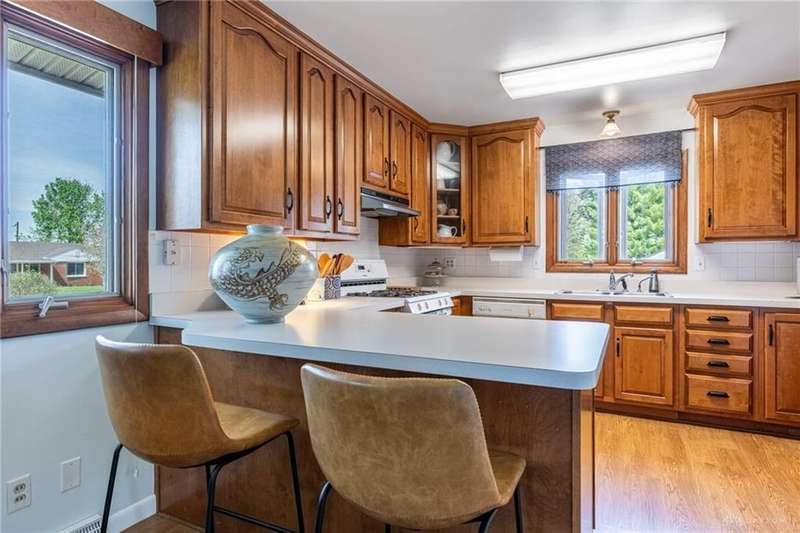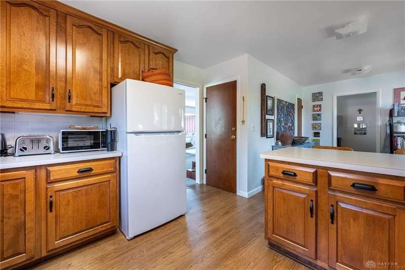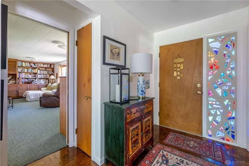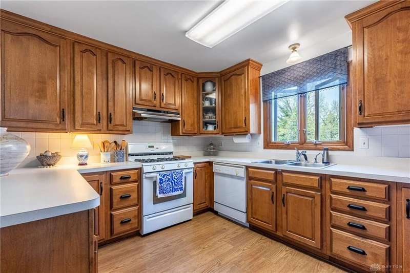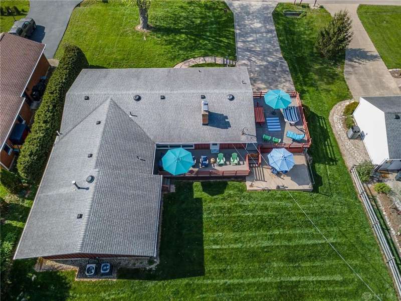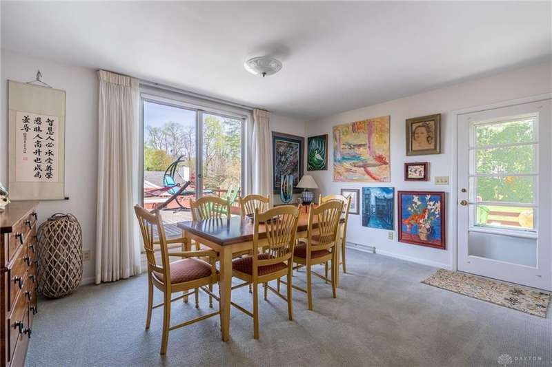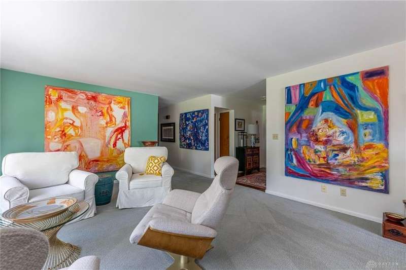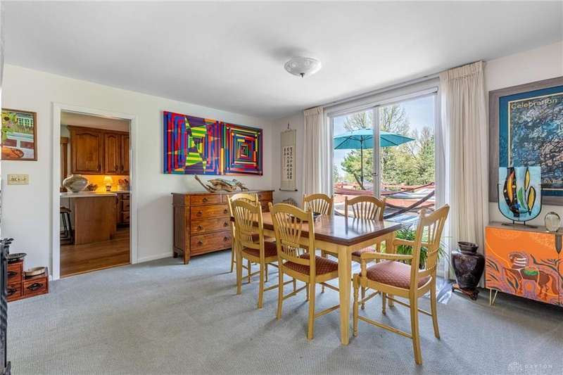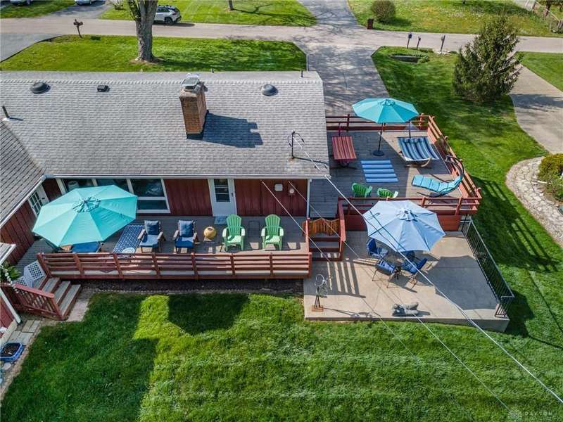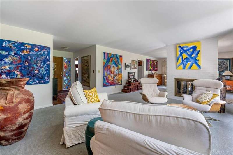 GORGEOUS Mid-Century Modern with pride of Ownership Inside & Out, located in one of Xenia's most sought, beautiful neighborhoods! Discover 2,261 sq. ft. of beautifully maintained main-level living, paired with a full basement offering an additional 2,000 sq. ft. of versatile space. From the moment you step onto the wide, relaxing front porch and into the inviting foyer, this home welcomes you with warmth and light. A stunning wall of windows fills the formal living and dining rooms with sunshine, while a dual-sided white brick fireplace adds charm and elegance—perfect for gatherings. Host with ease in the expansive living areas or step outside to the AMAZING, elevated SUN-MOON deck, where you’ll enjoy views of the lush, landscaped backyard. A perimeter deck and grilling patio add to the outdoor living space! The kitchen features a bar top, sunny breakfast nook, and pantry closet. The dedicated Family Room / Den off the foyer adds function and flexibility. Offering 4 spacious bedrooms and 3 full baths, including a primary suite with ensuite bath and generous closet space, this home blends comfort with convenience. Additional bedrooms share access to 2 hall baths - one with jetted tub and a third full bath with walk-in shower. Via front and rear staircases, the semi-finished, garage walkout basement provides endless potential—ideal for recreation, hobbies, a home office, or workshop, complete with utility sink and storage galore! Meticulously updated: Newer main living area carpeting (2022), front furnace & A/C (2020), roof vent (2020), breaker panel (2019), sump pumps (2023), radon system (2023), water heater (2017), plus Andersen & Pella windows throughout key living areas. 12x10 storage building, natural privacy barrier to the rear and low-maintenance redwood siding add to the conveniences. All just 20 minutes from Wright-Patterson AFB with quick access to Route 35. Simply stated... this is the one!! Contact Brett Williford, Irongate Realtors at 937-477-3223 for a tour!